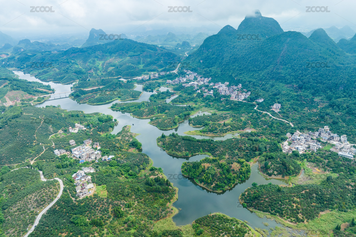 中国广西蒙山县茶山湖风景区云雾缭绕