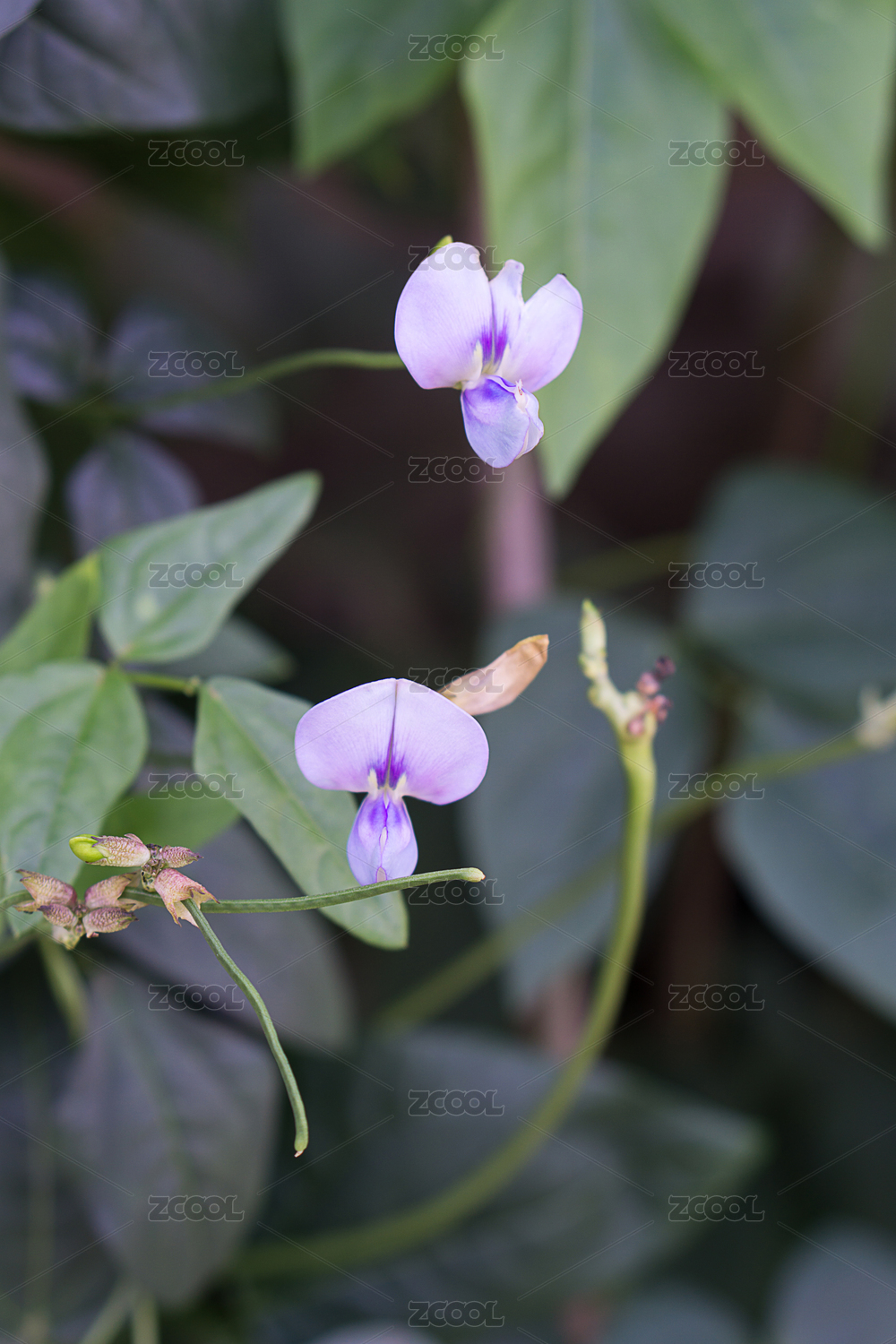 淡紫色的长豆角花朵