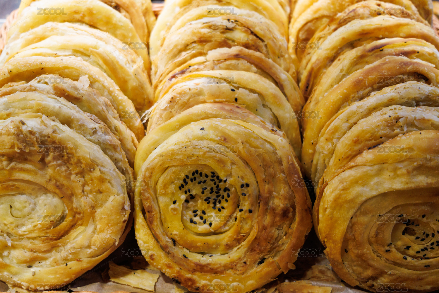一堆烤炉上的白芝麻烤面包