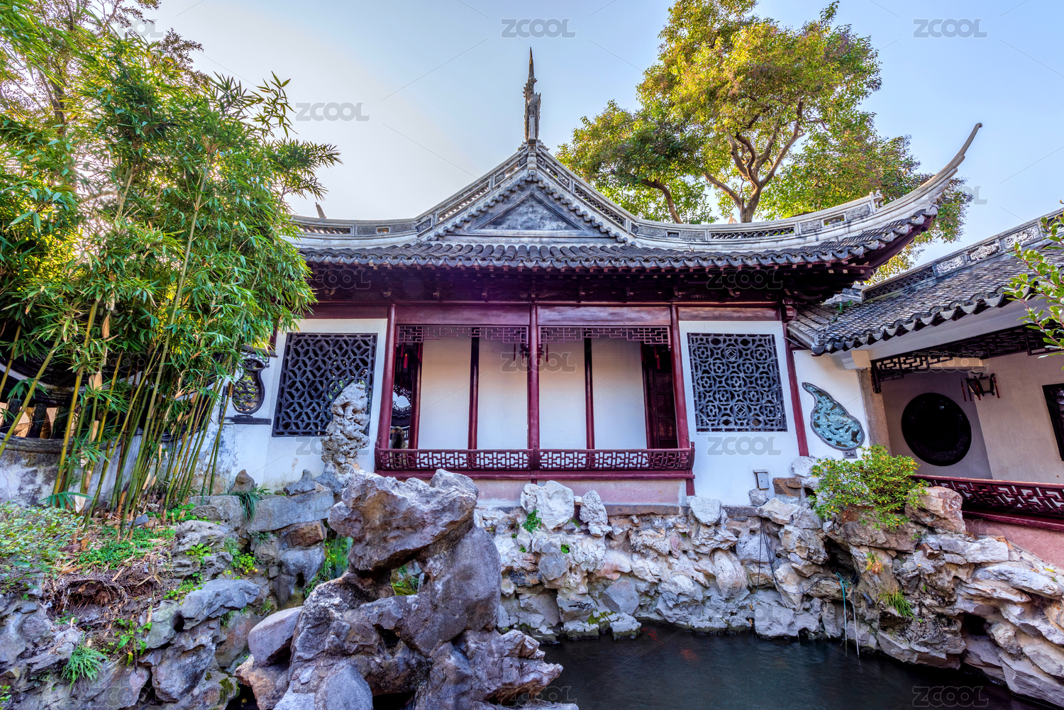 假山,石头,水塘,水池,小河,溪水,楼台亭榭,中式庭院,树林,树根