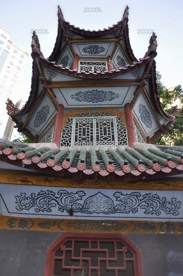 中国广东深圳赤湾天后宫中式琉璃瓦亭子