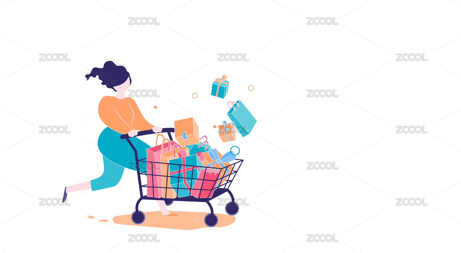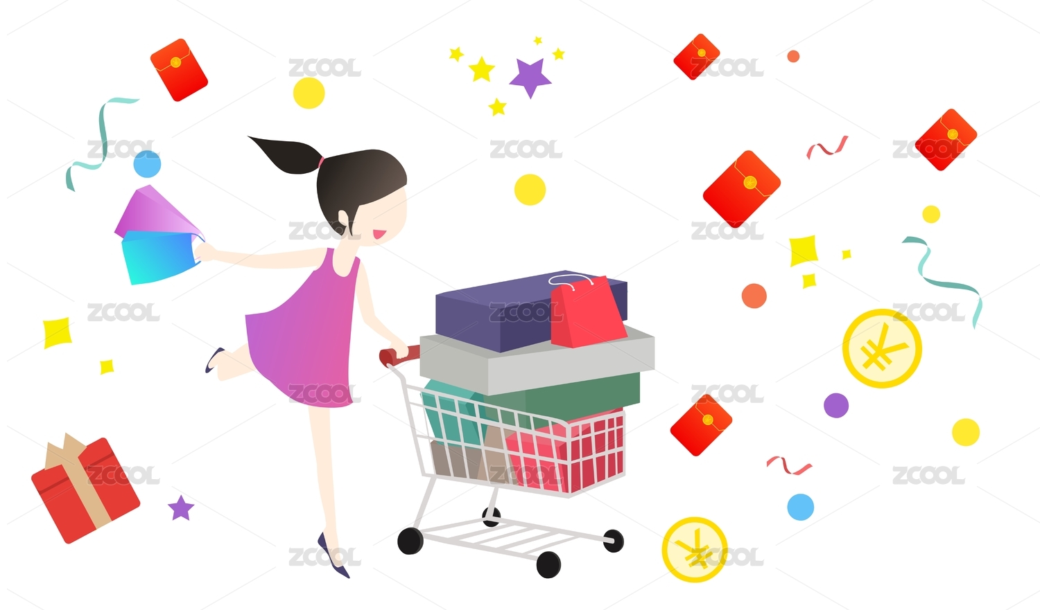 一位美丽时尚的都市少女用手机在网上购物消费的矢量插画背景