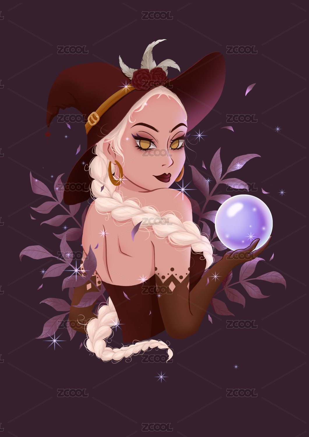 欧美黑皮白发魔法师暗黑水晶球少女