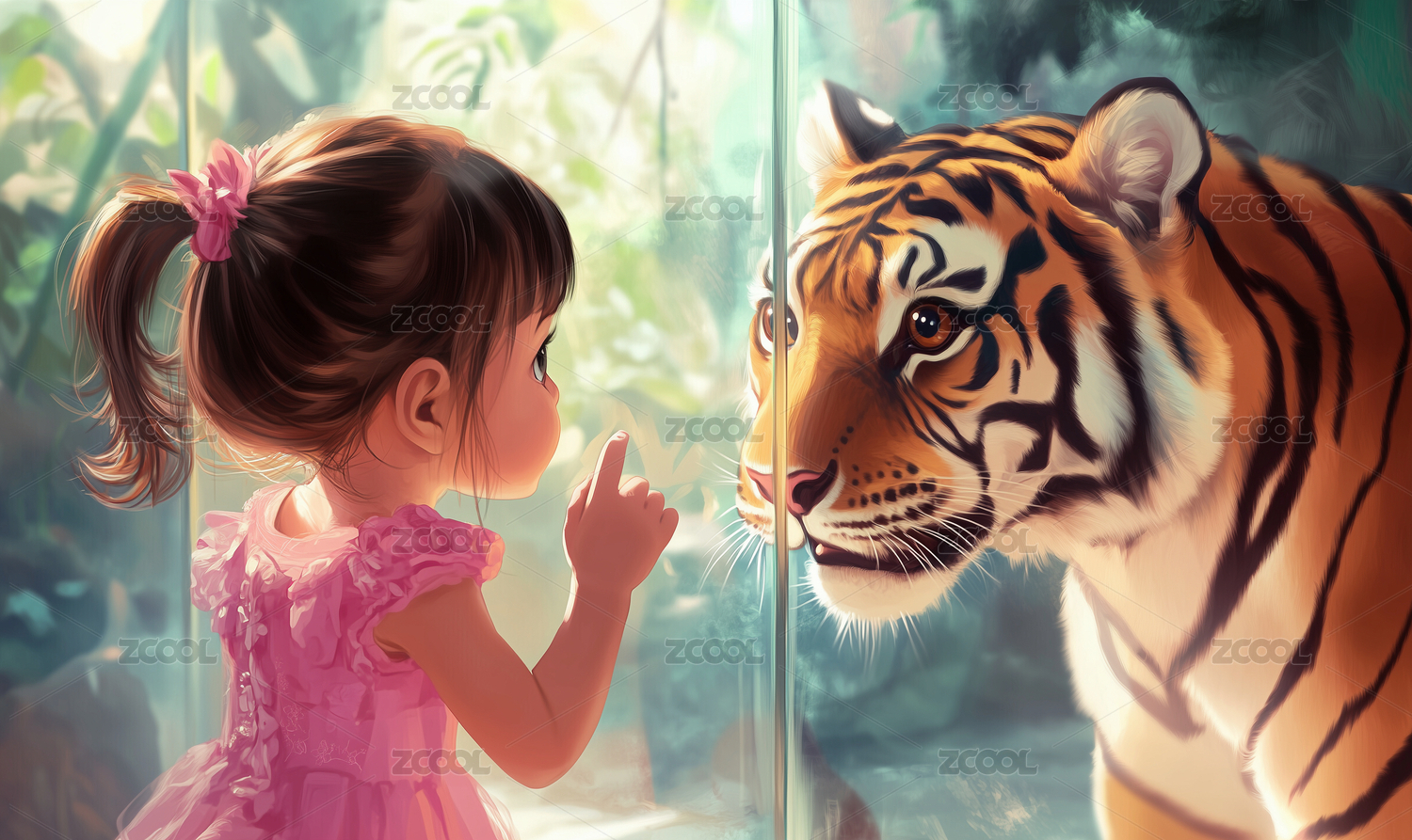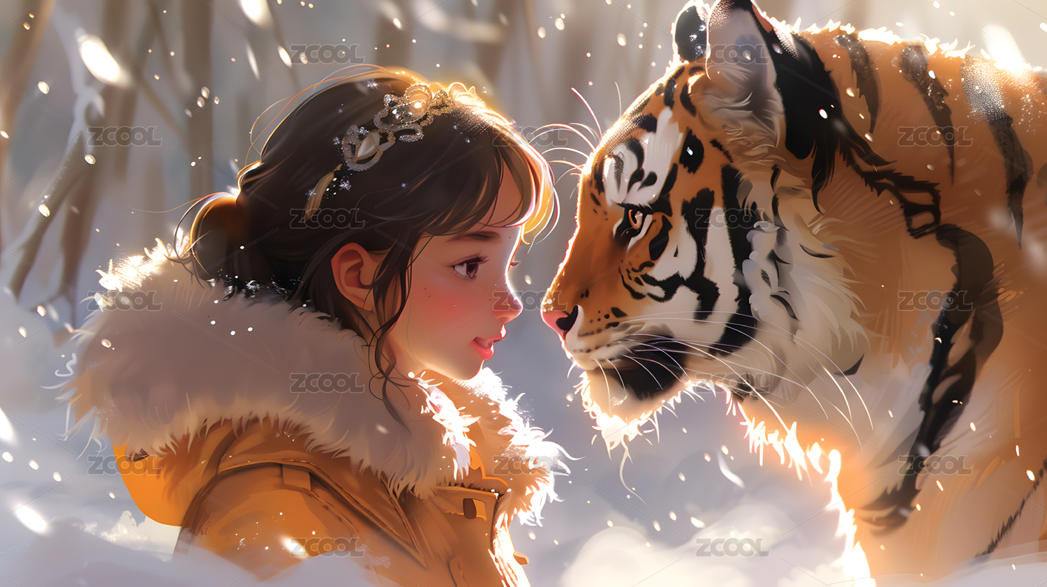 老虎,女孩,卡通,插画,虎年,生肖虎