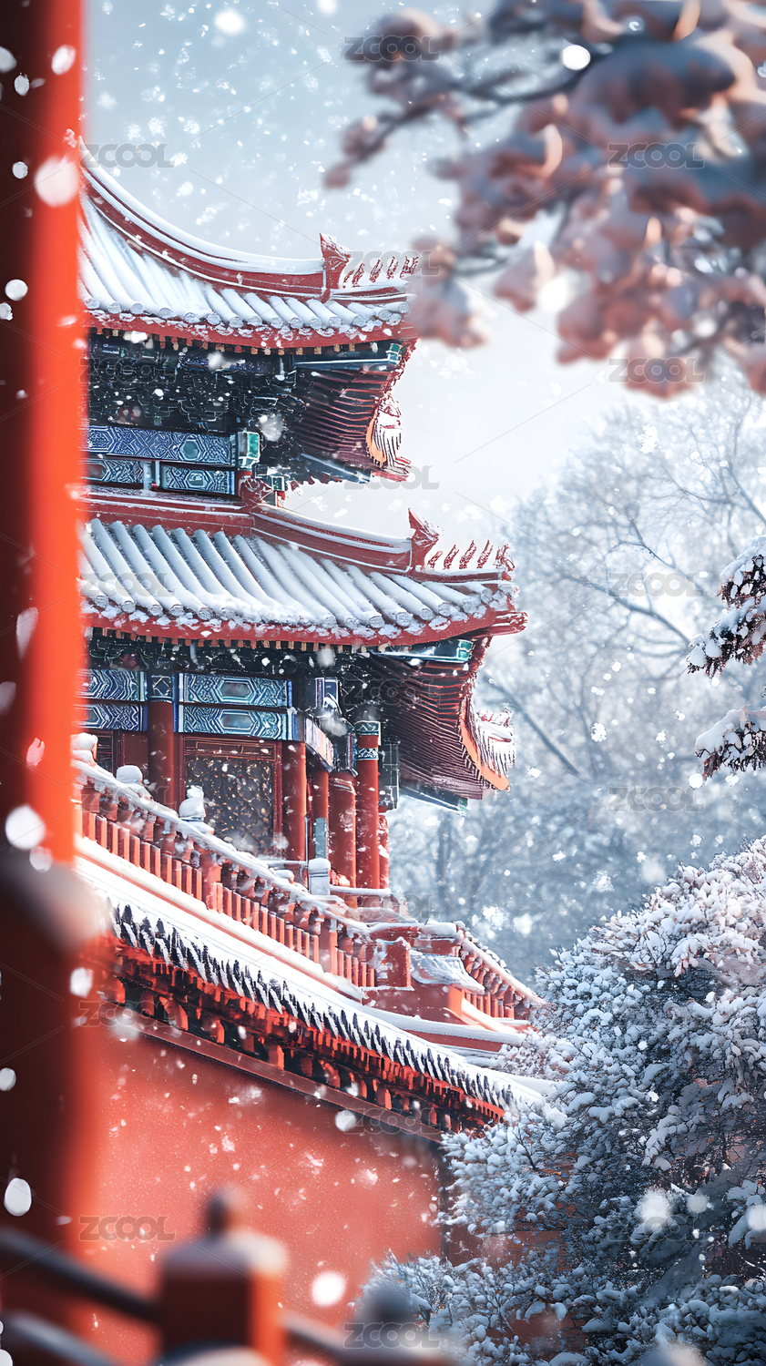 中国风,冬天,下雪,雪,雪花,人,人物,卡通,插画,女孩