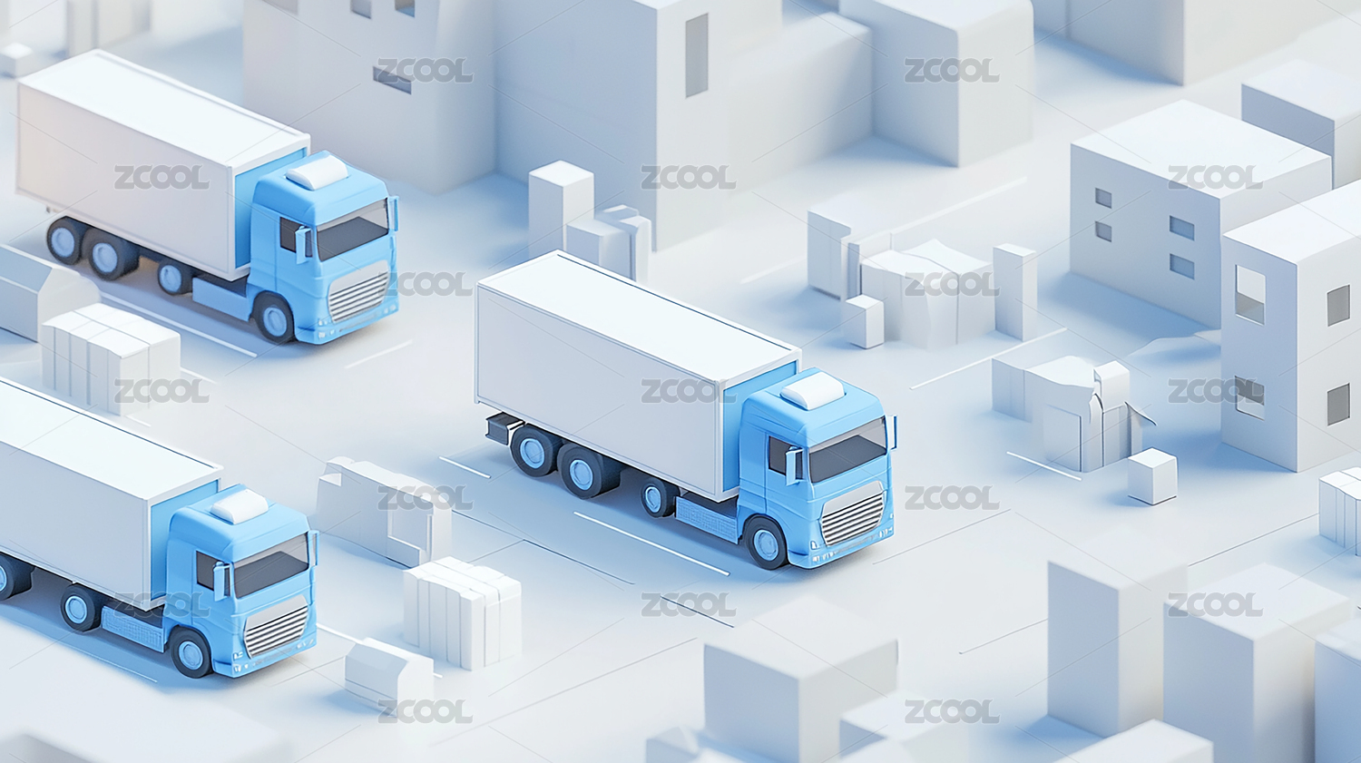3D货运汽车物流园区运输概念