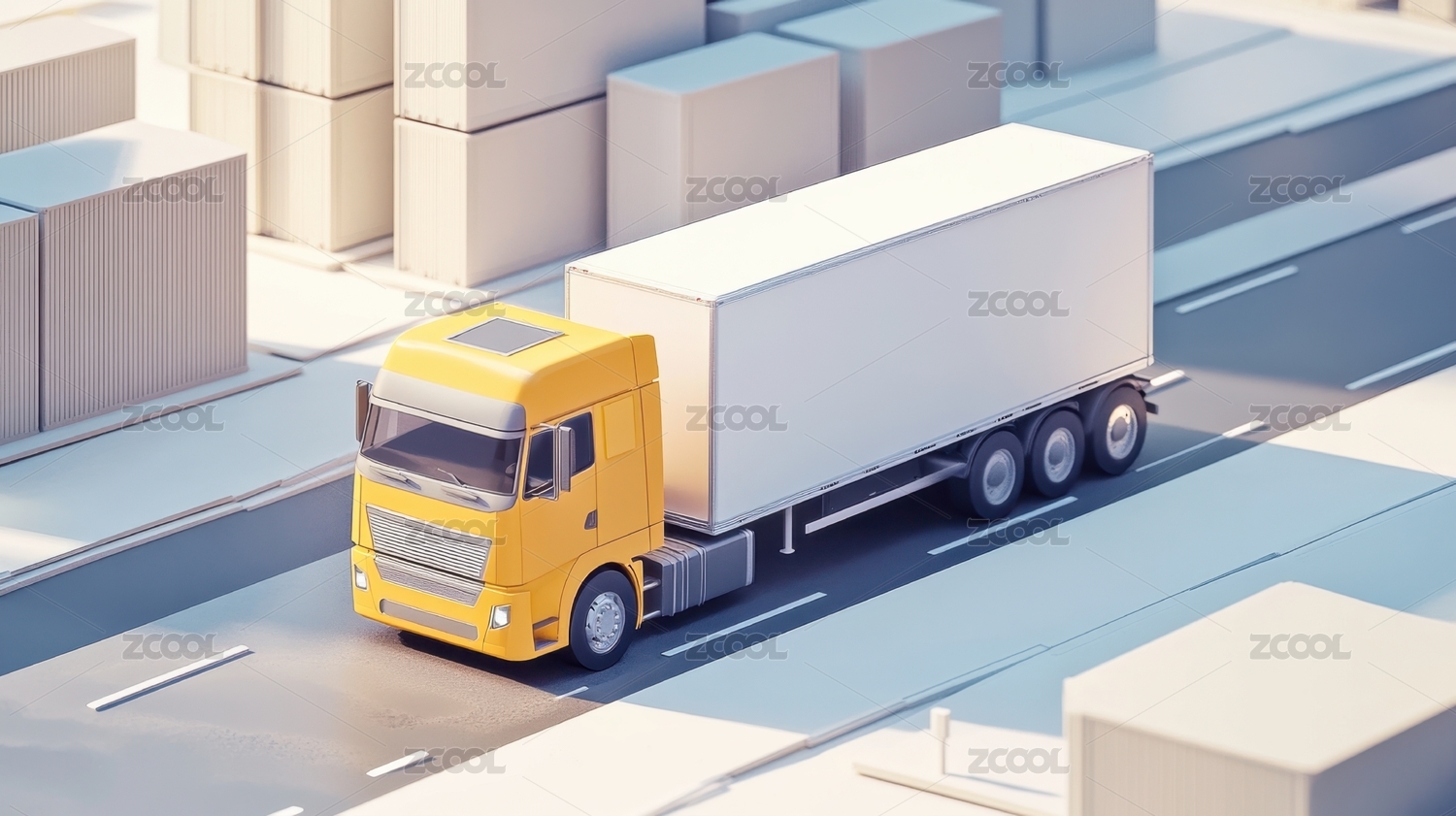 3D物流快递运输大货车概念图