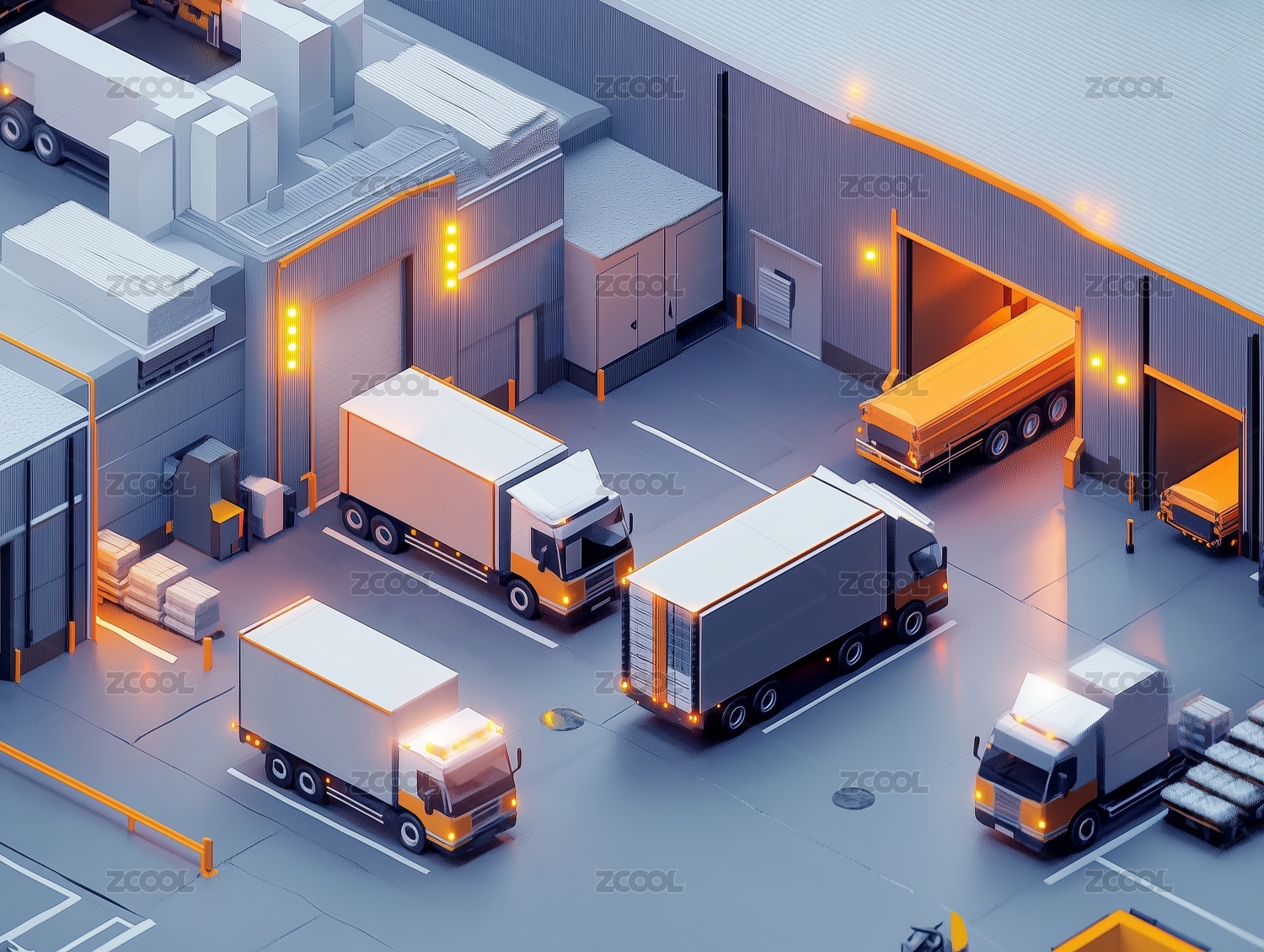 等距视图下的仓储物流运输仓库
