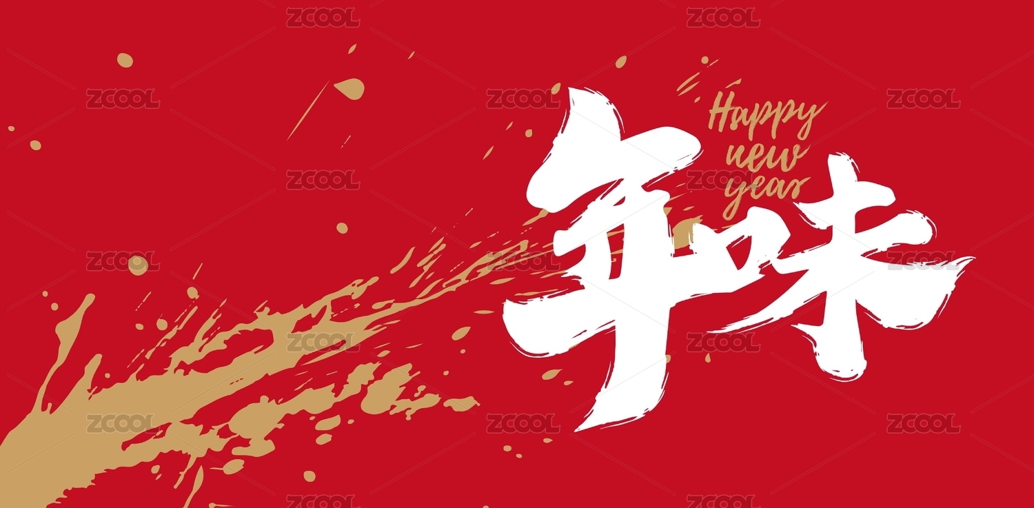 新年happy牛year中国风书法标题字