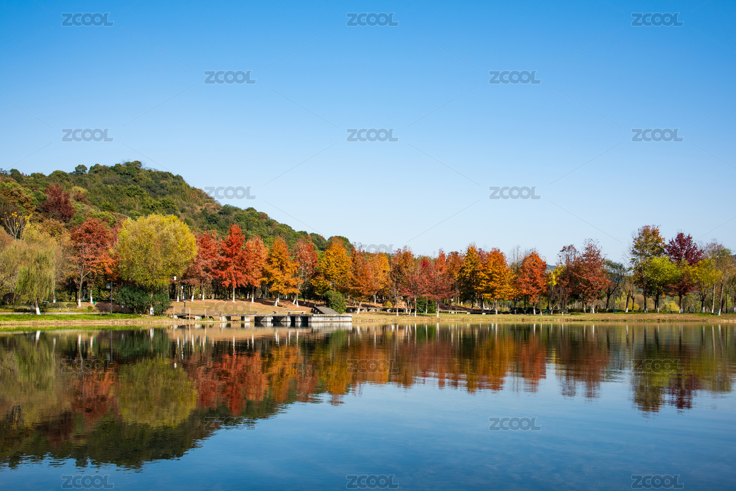 浙江杭州萧山区湘湖畔色彩斑斓的秋林