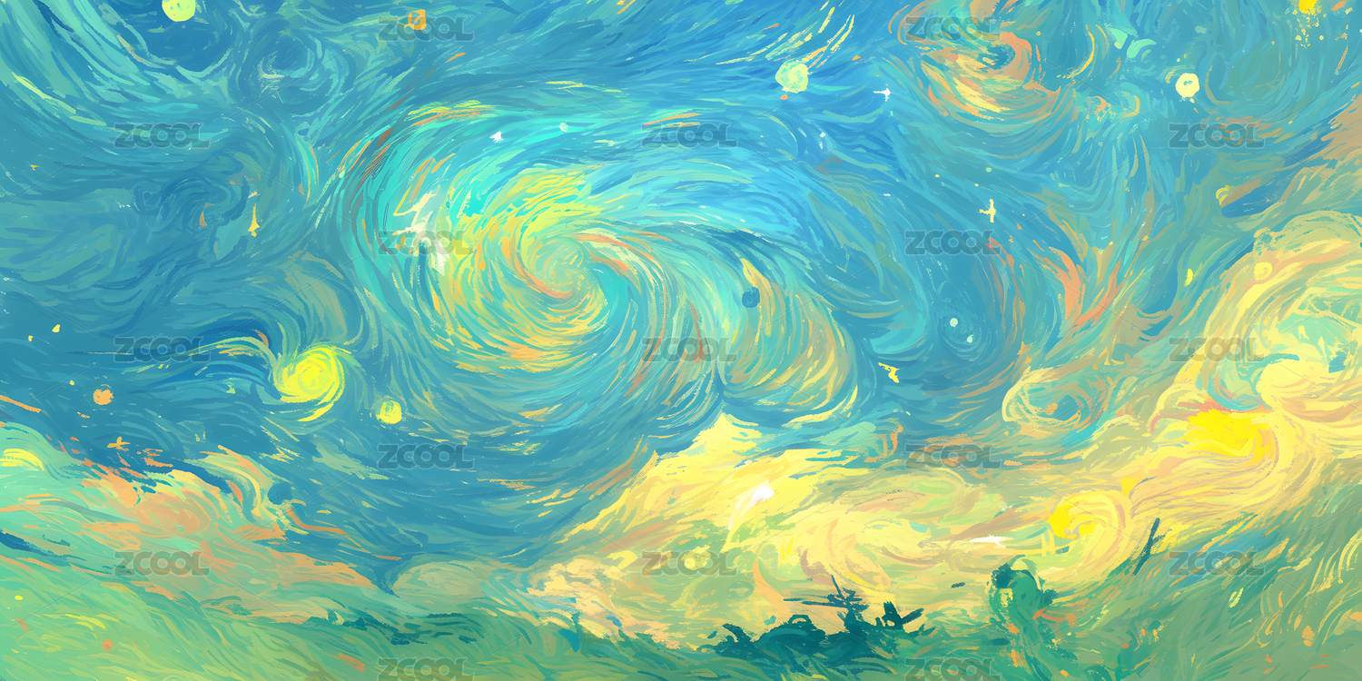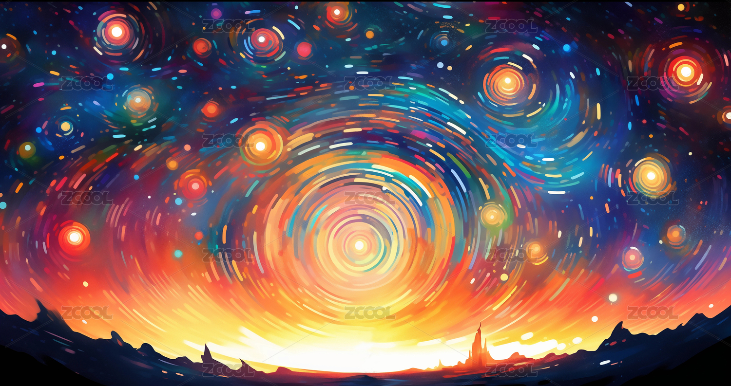 手绘卡通唯美的抽象艺术感螺旋的夜空插画