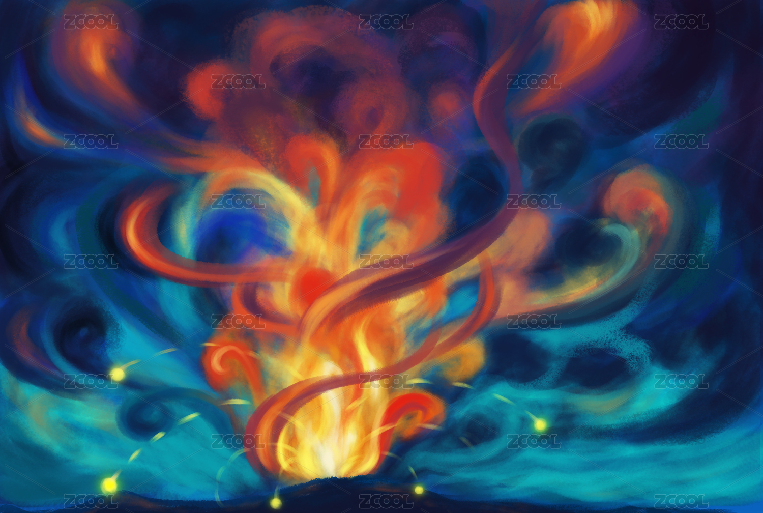 手绘卡通唯美的抽象艺术感燃烧的蜡烛插画