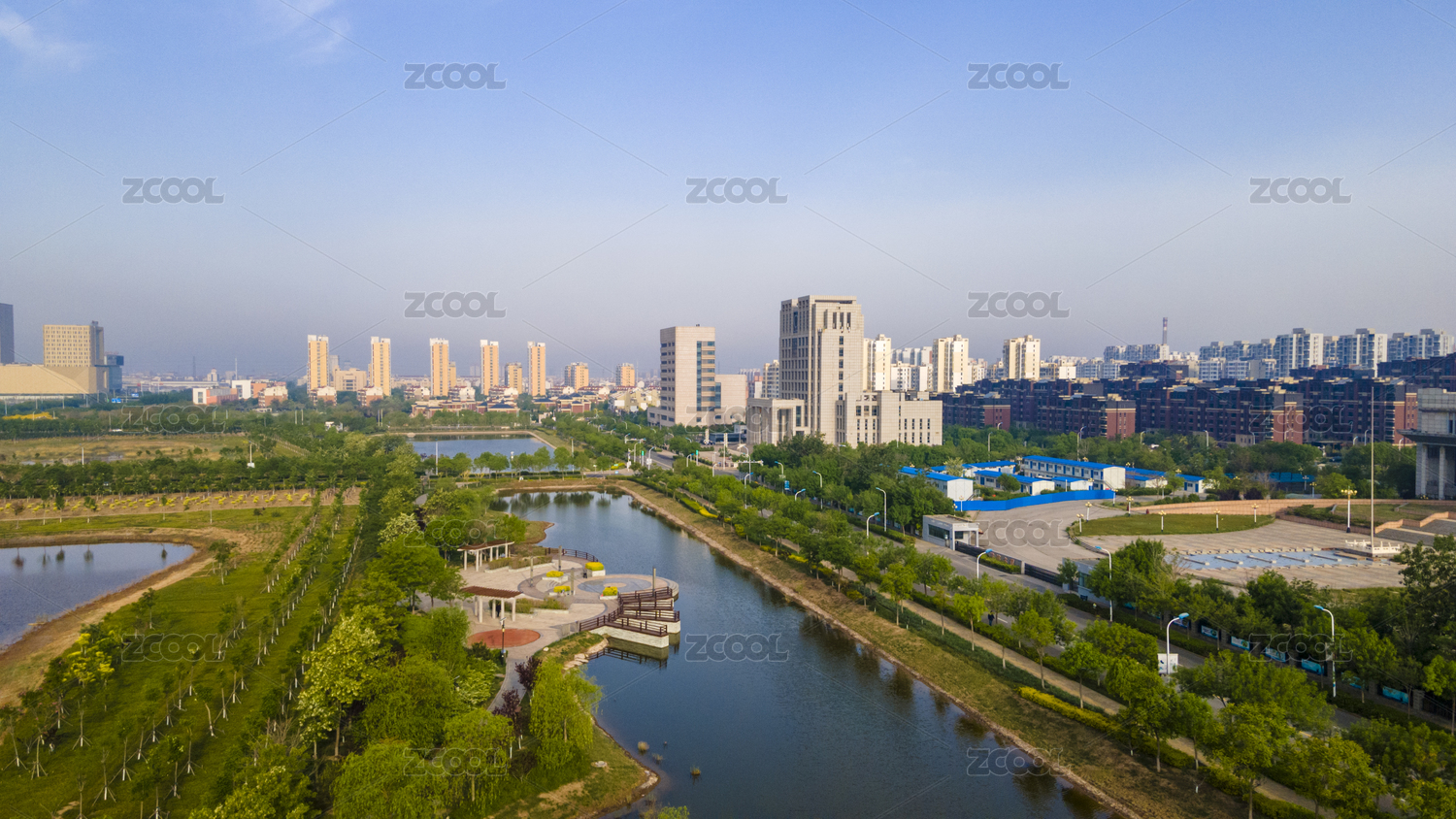 天津大港新城区建筑生态绿化航拍俯视图