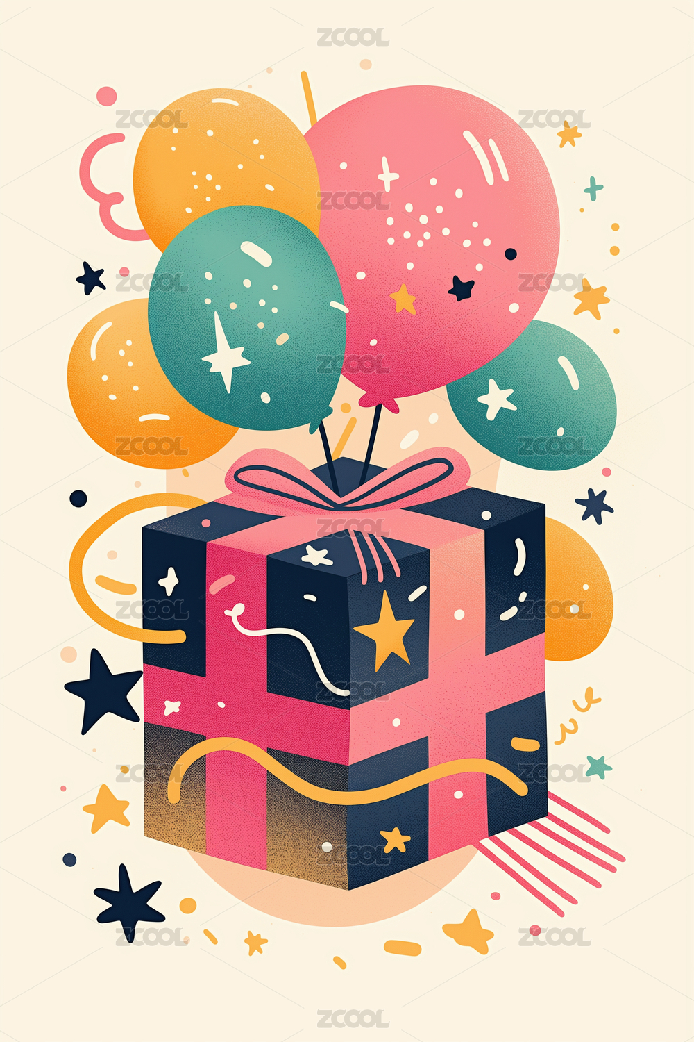 彩色气球礼物插画