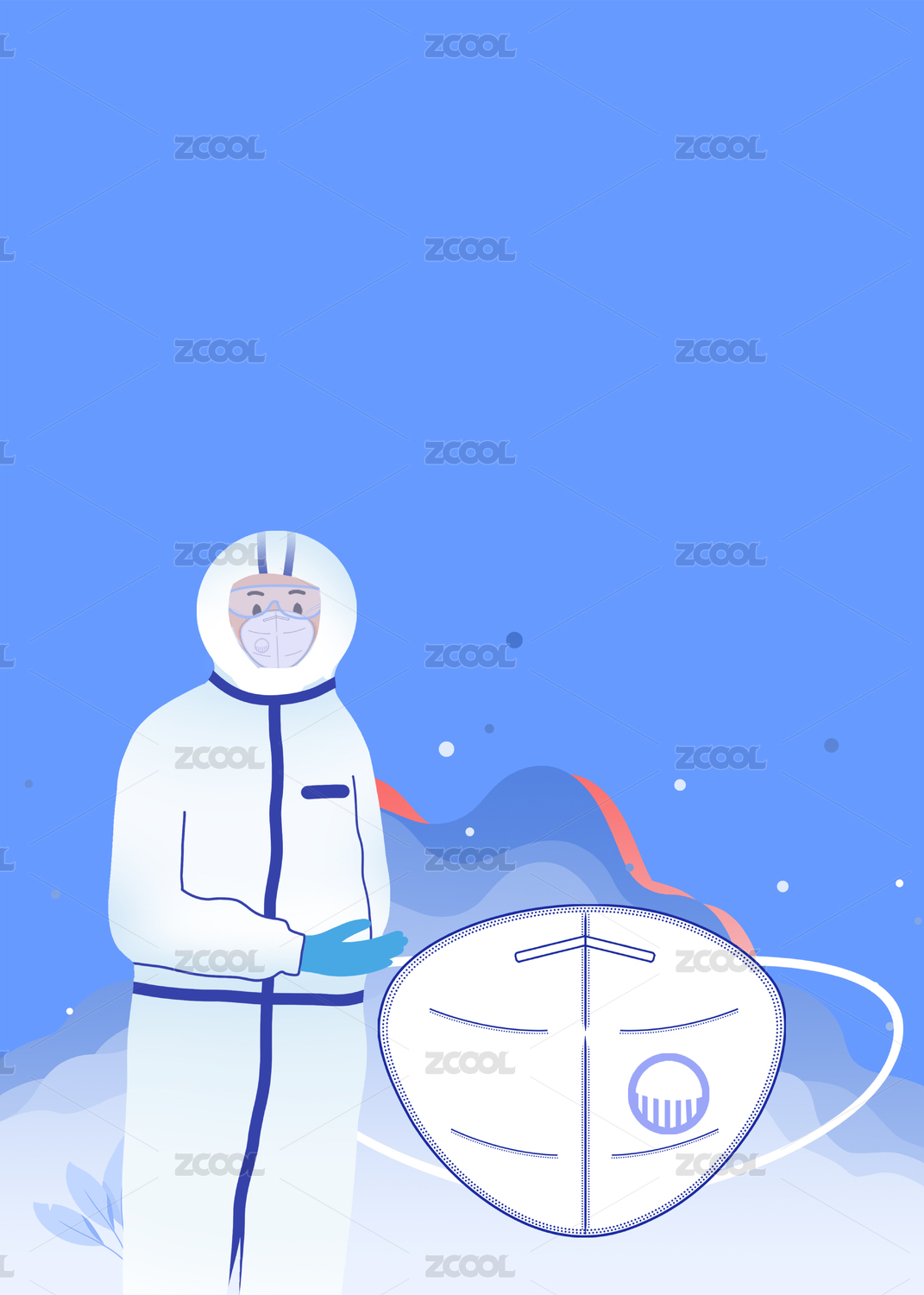 蓝色背景战疫医生矢量插画