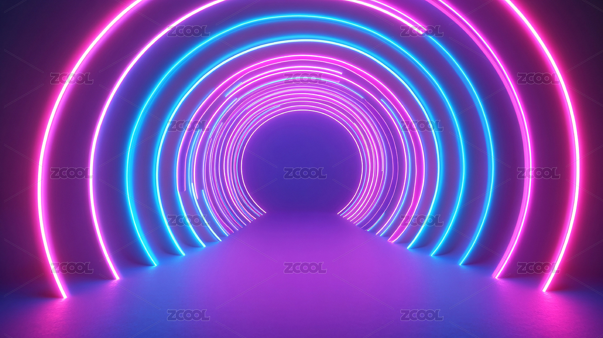 抽象霓虹灯发光几何线条3D渲染商务背景