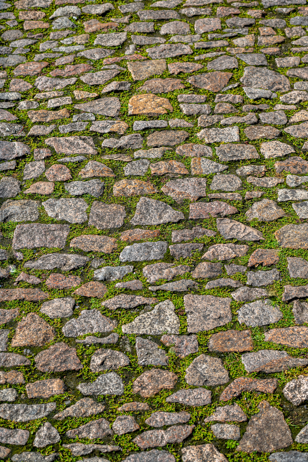 乡村古镇小碎石铺设的人行道路面纹理特写