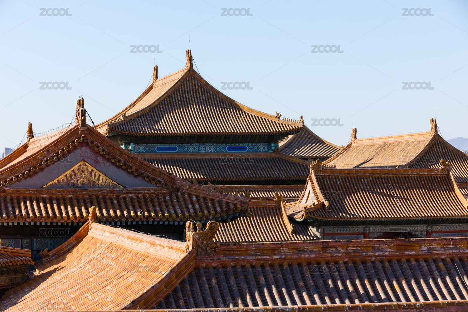 中国北京故宫里的宫殿琉璃瓦房顶与宫殿群