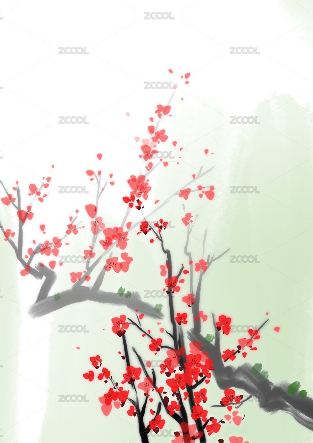 中国风抽象艺术中国传统梅花山水诗意水墨画
