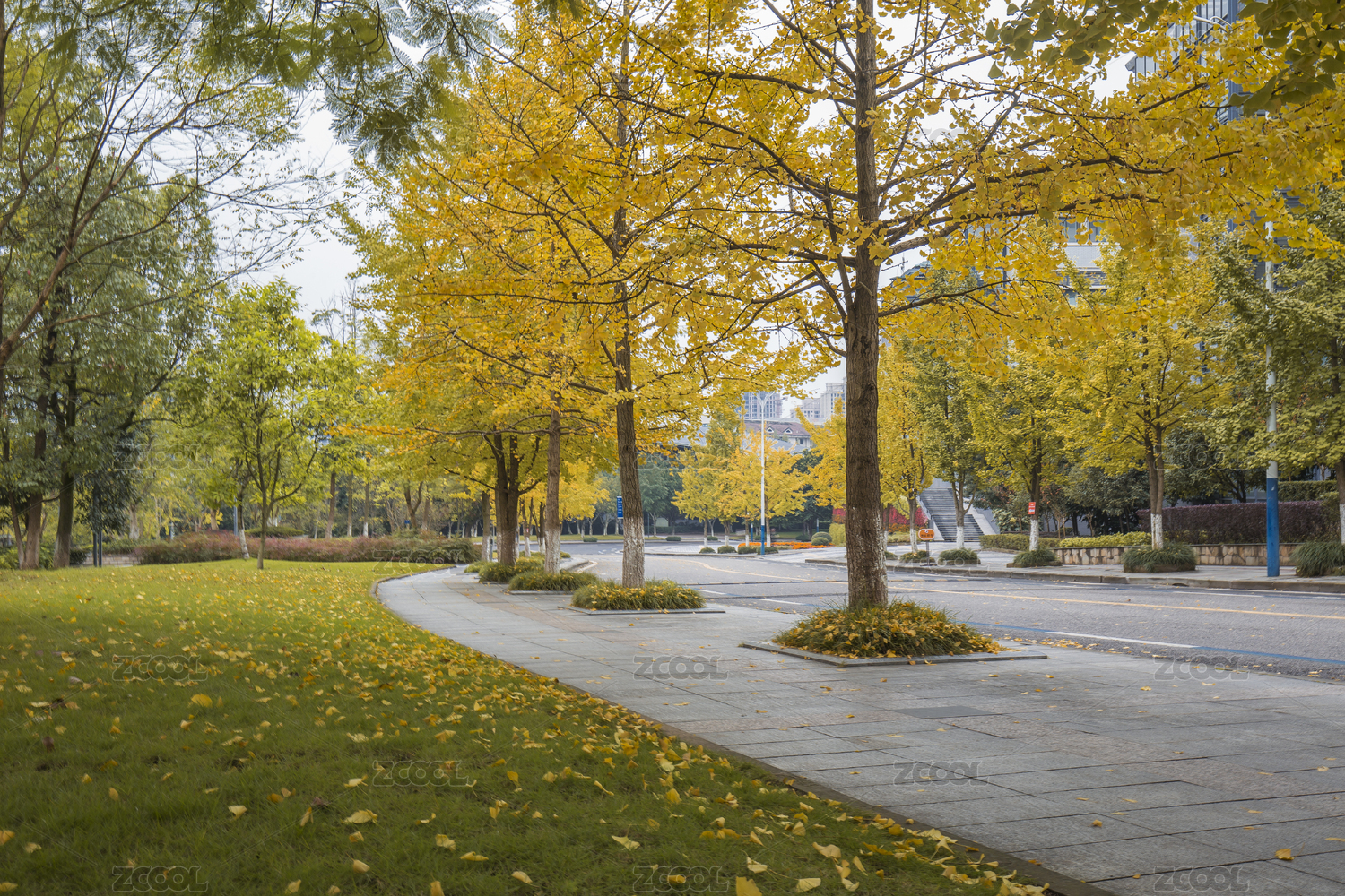 冬日阳光下银杏树叶金黄色的重庆城市公园