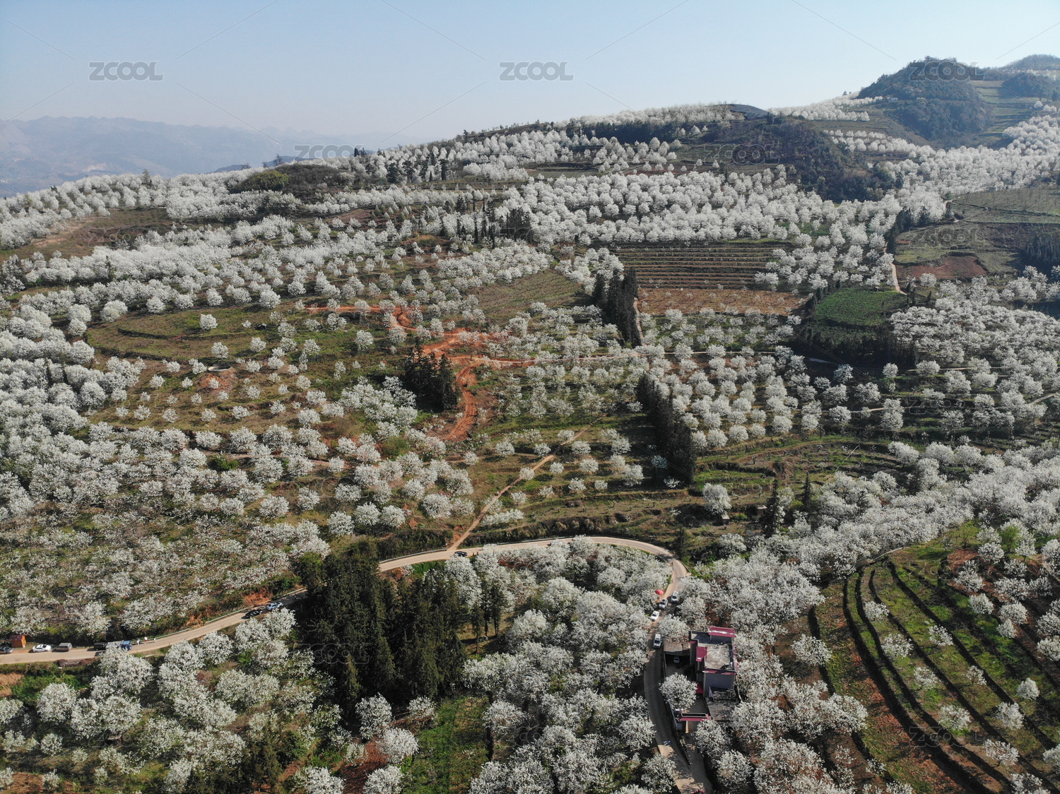个旧市加级寨春季梨花开放