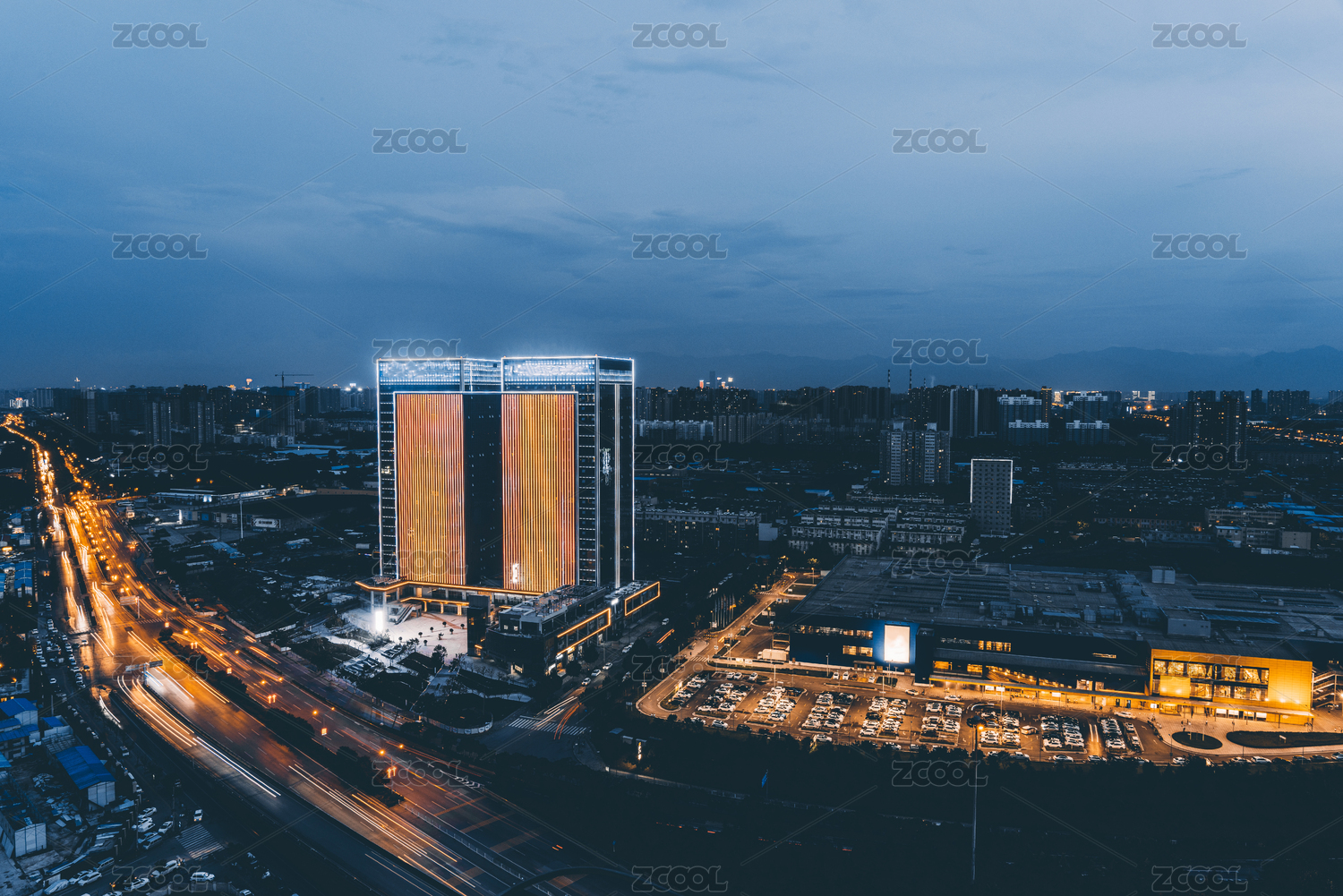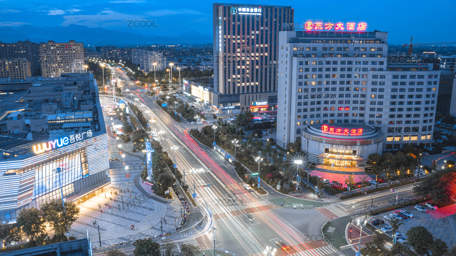 中国江苏省宿迁市夜晚主城区高楼大厦建筑