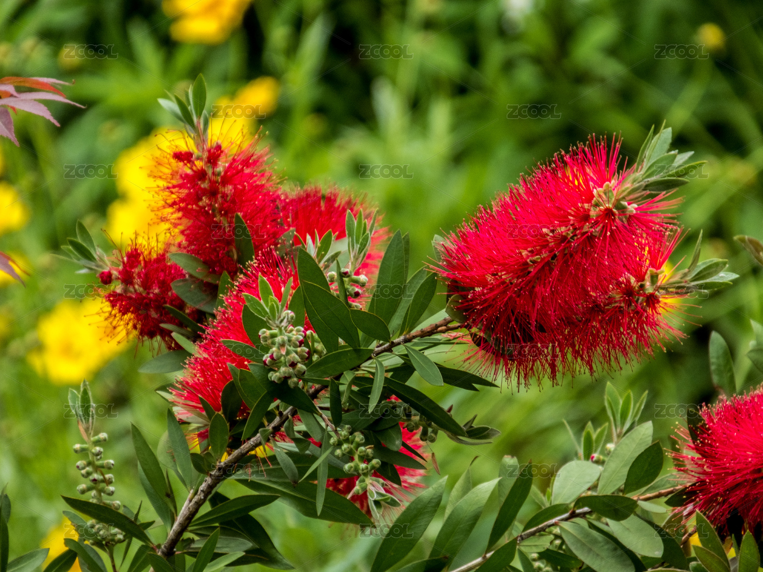 盛夏花园里盛开的红千层景观