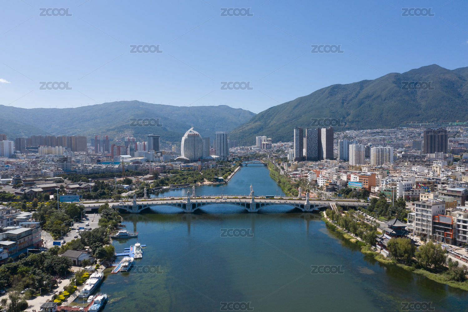 大理下关大理港口兴盛大桥城市风光白昼航拍