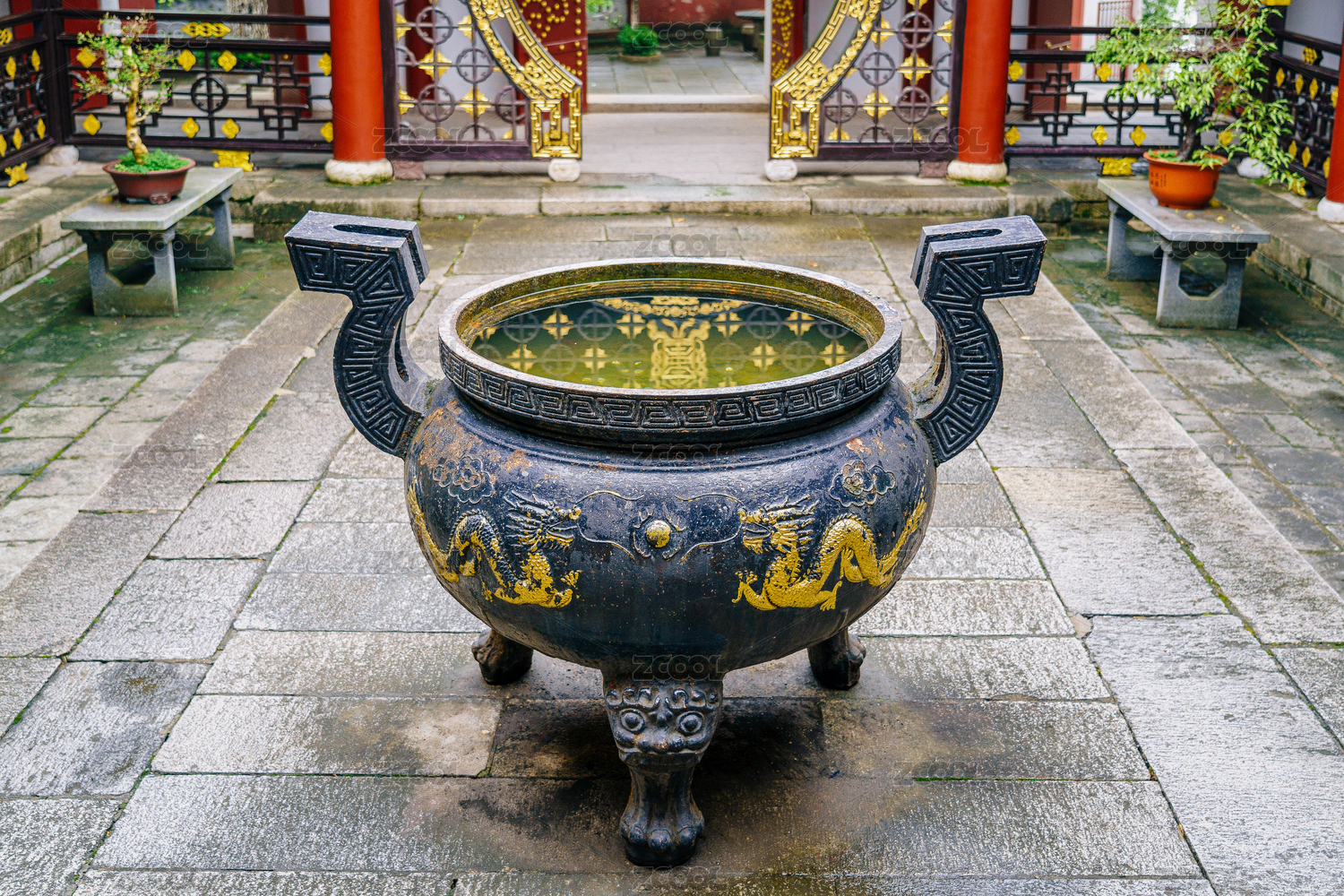 庭院中的石雕香炉