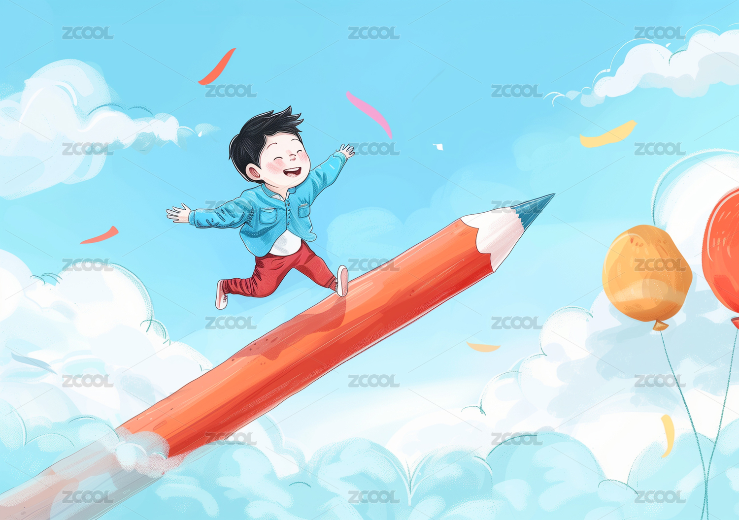 儿童铅笔气球节日插画图素