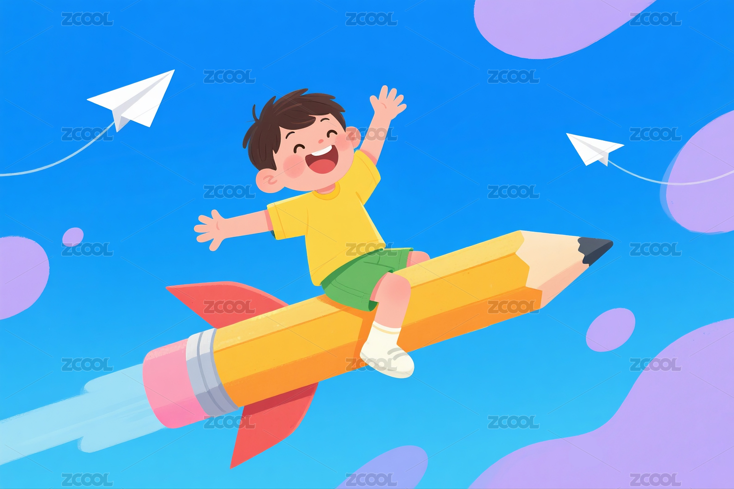 坐铅笔火箭的小男孩
