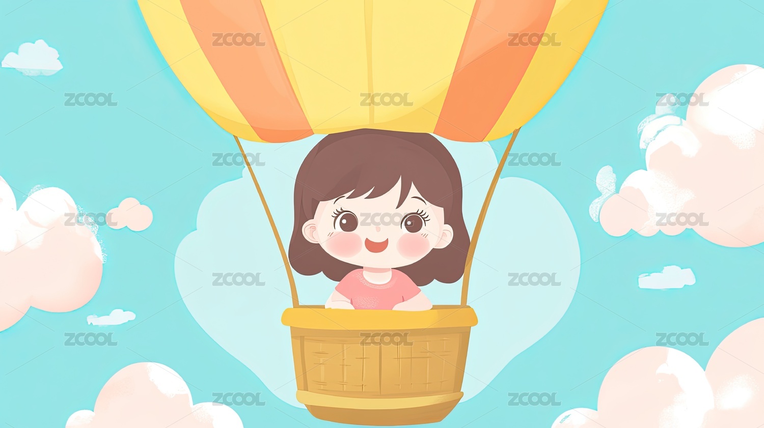 坐热气球的女孩插画