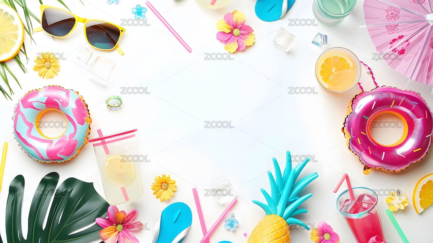 3d夏日各式各样玩具中间留白背景