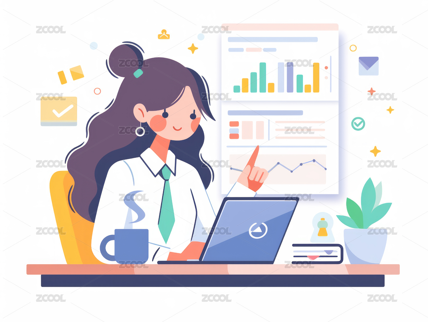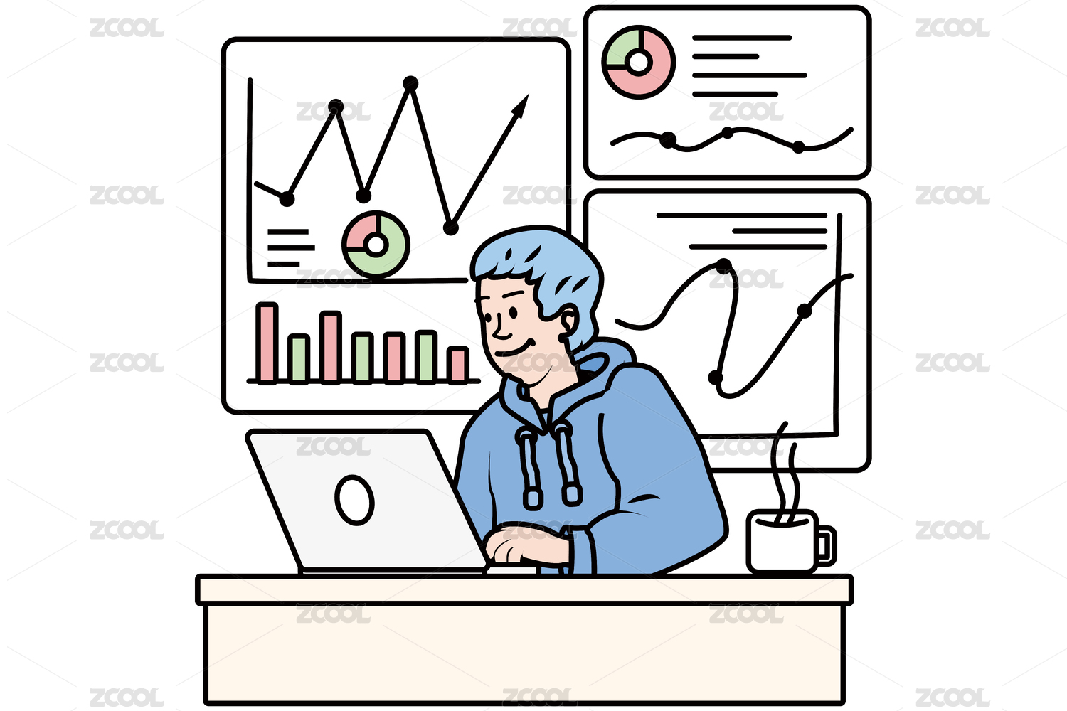 扁平,人物,插画,矢量,办公,扁平插画,B端,电脑,思考,通过