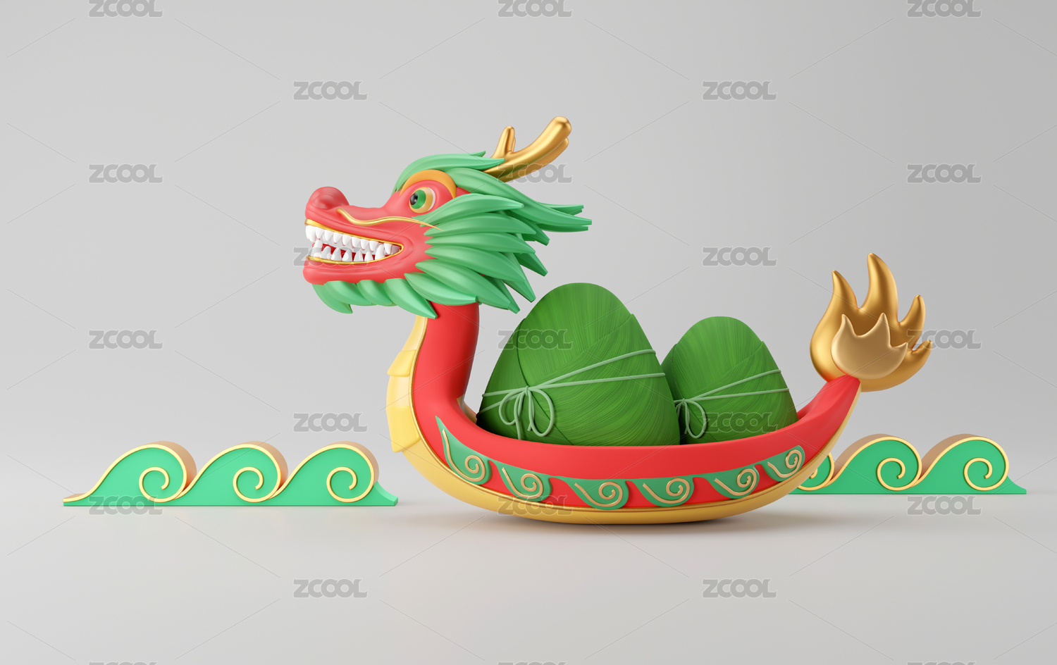 纯色背景中国传统节日端午节龙舟上装满粽子
