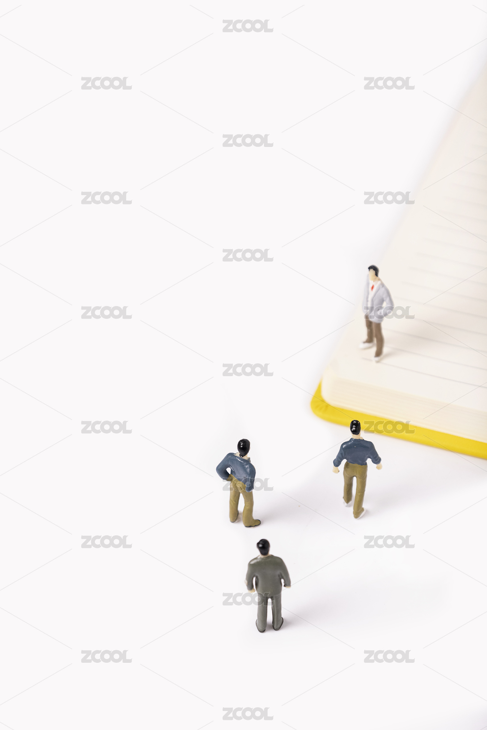 黑色铅笔周围黄色台灯下站着看报的人微缩创