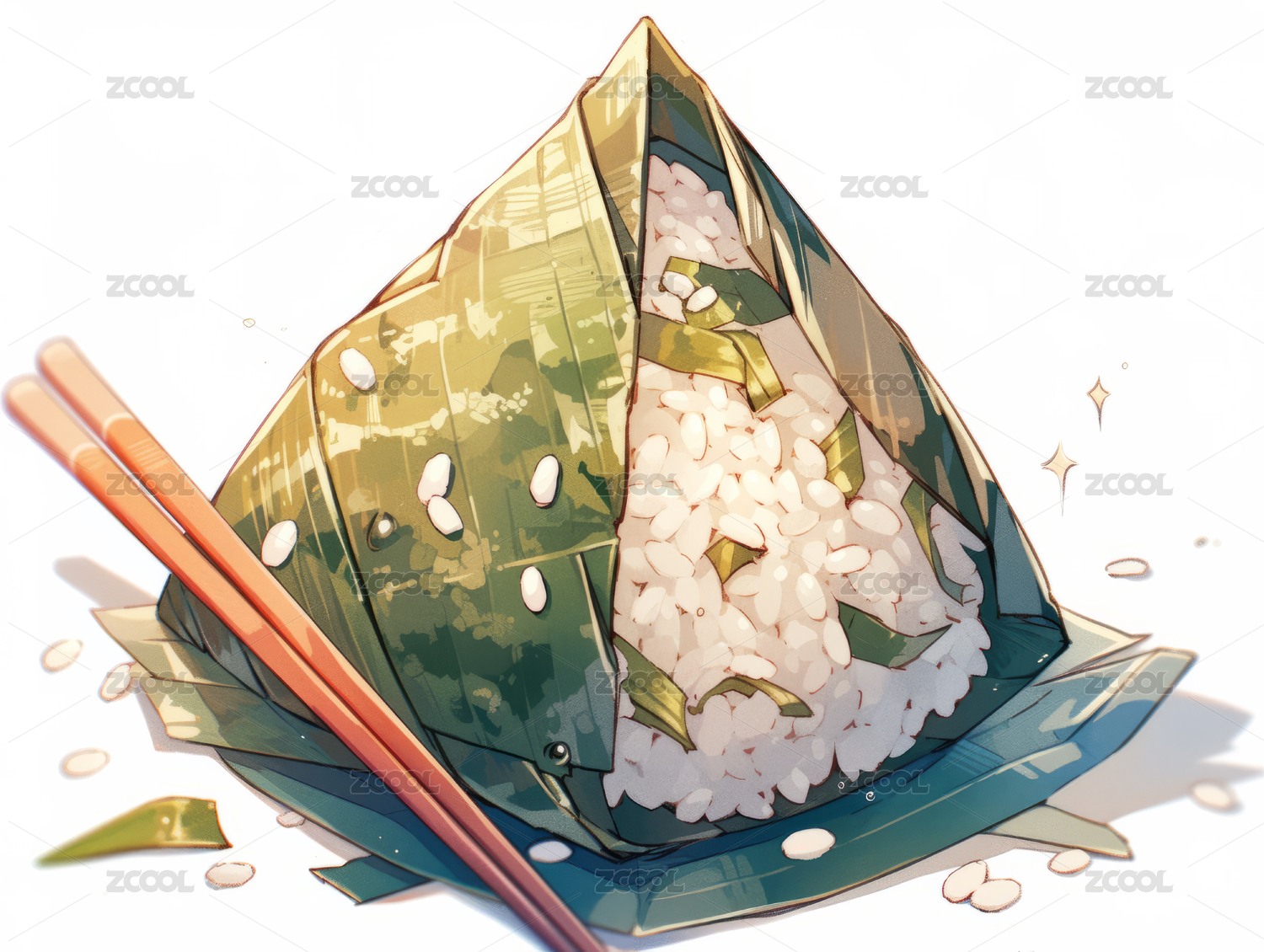 端午节,食品,粽子,插画,动漫风格,二次元,中国,传统,美食,节日