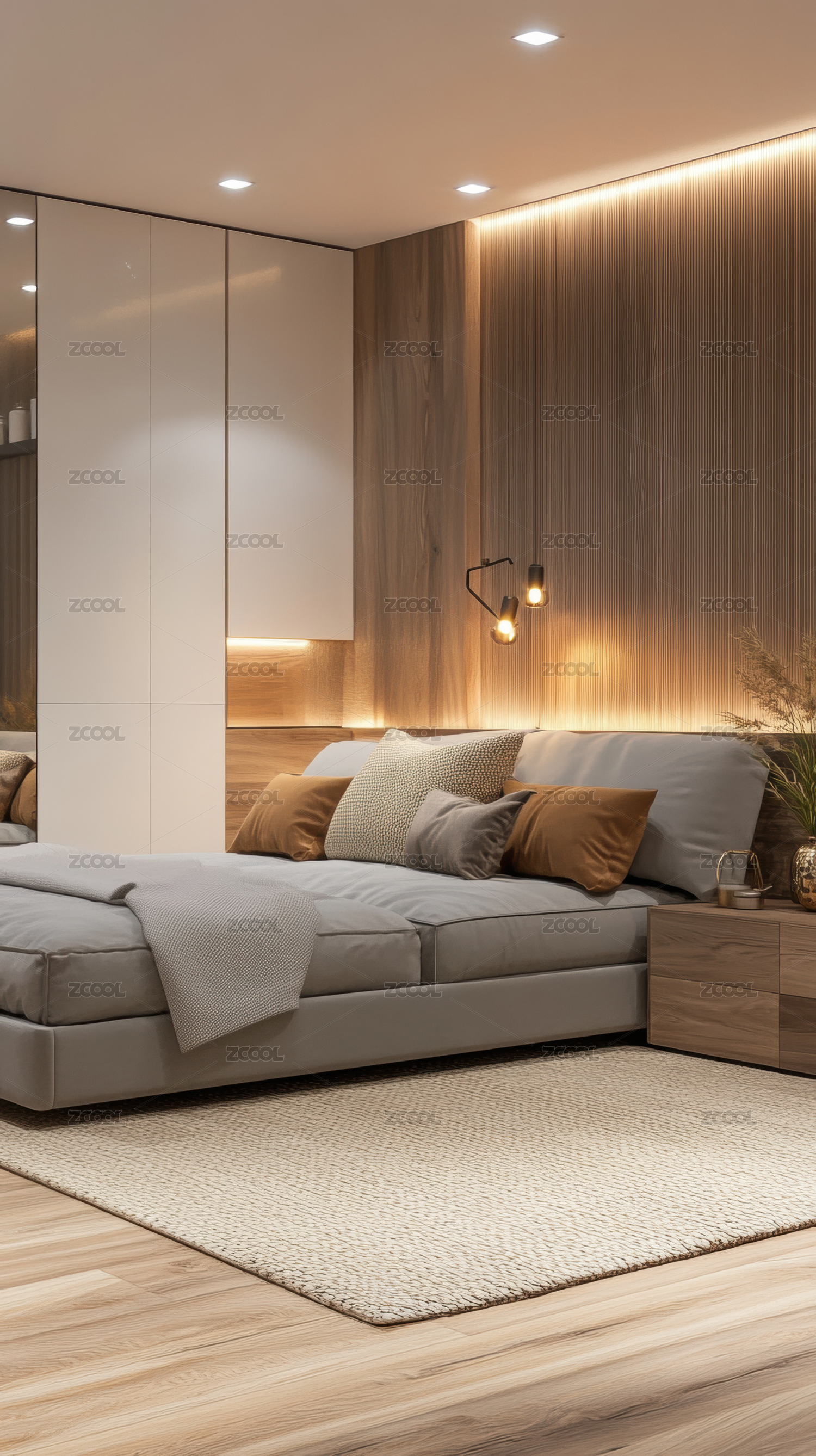 室内,卧室,设计,家居,床,温馨,木质,灯光,现代,简约