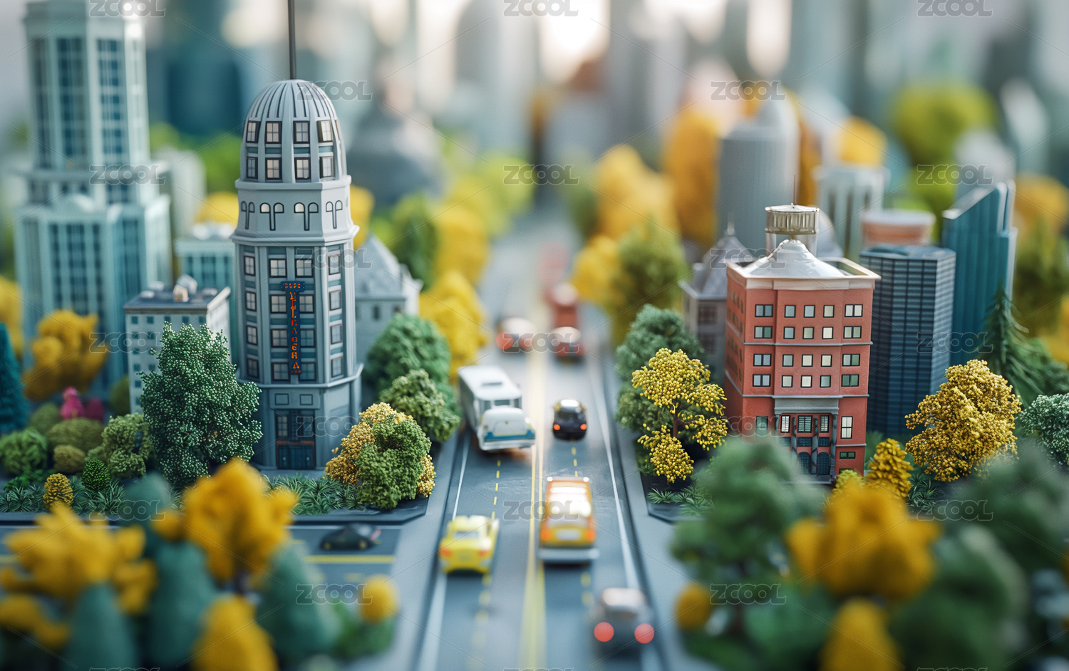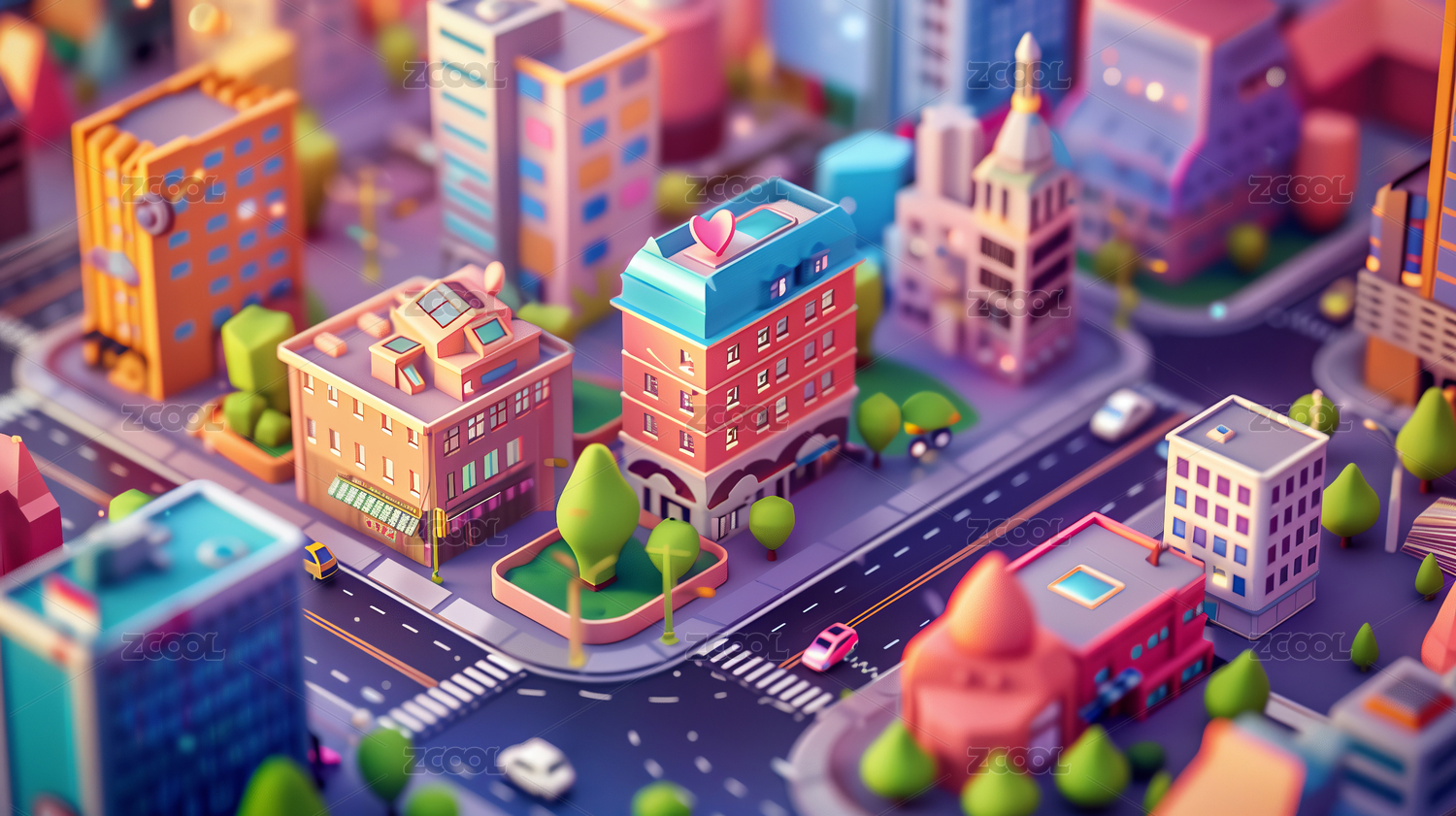 卡通城市三维建筑微缩场景