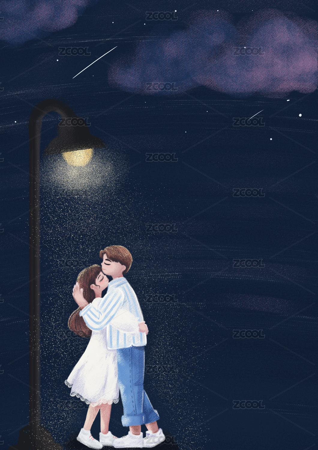 路灯下的拥抱