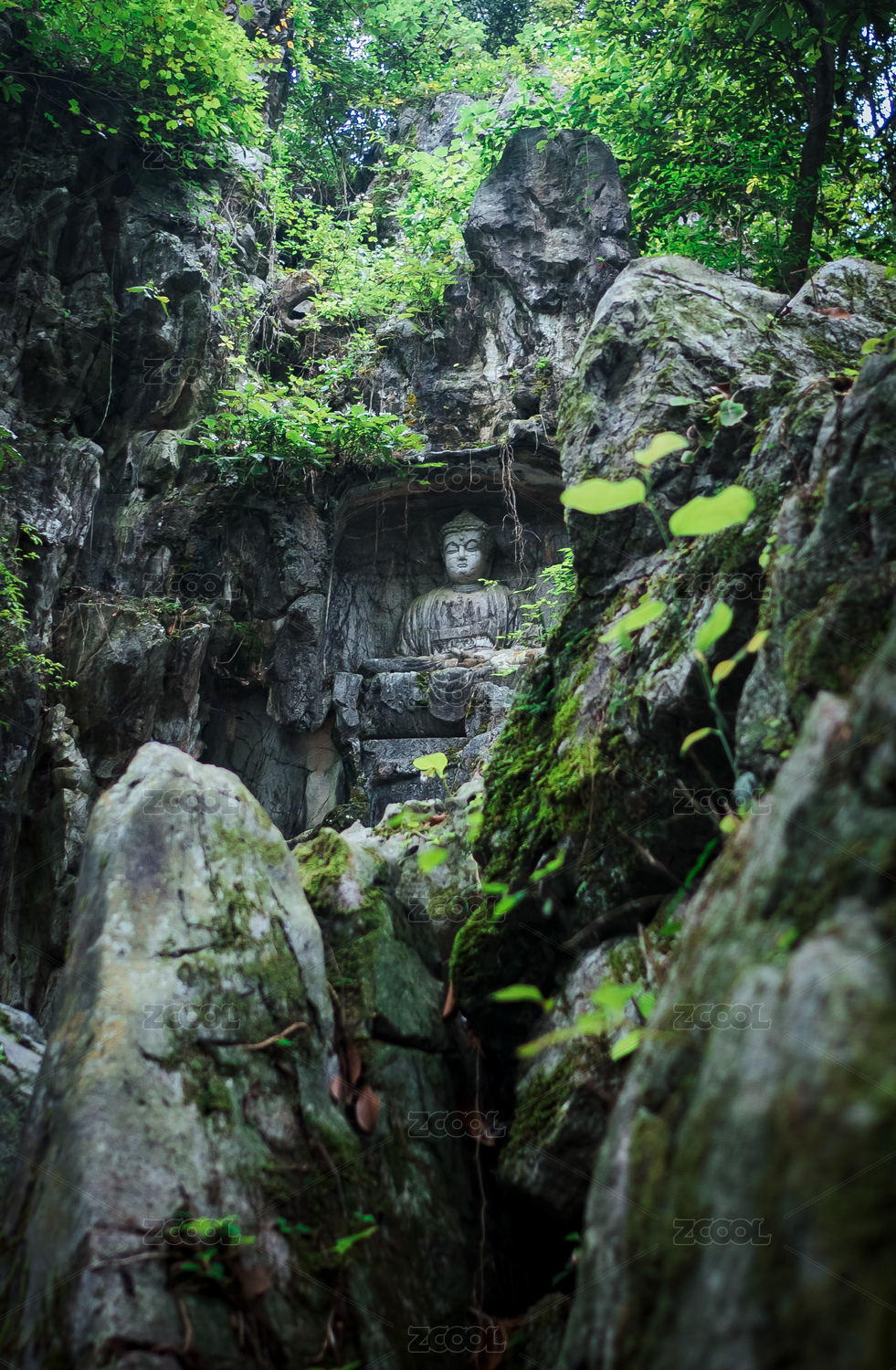 石壁上雕刻的佛像