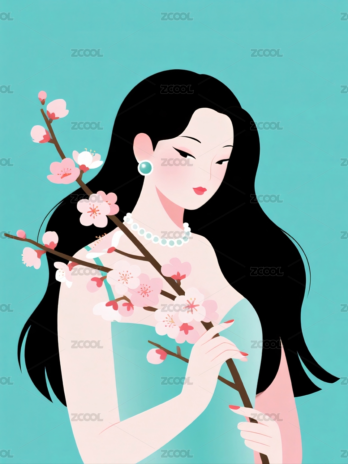 中式国潮风手绘旗袍女孩