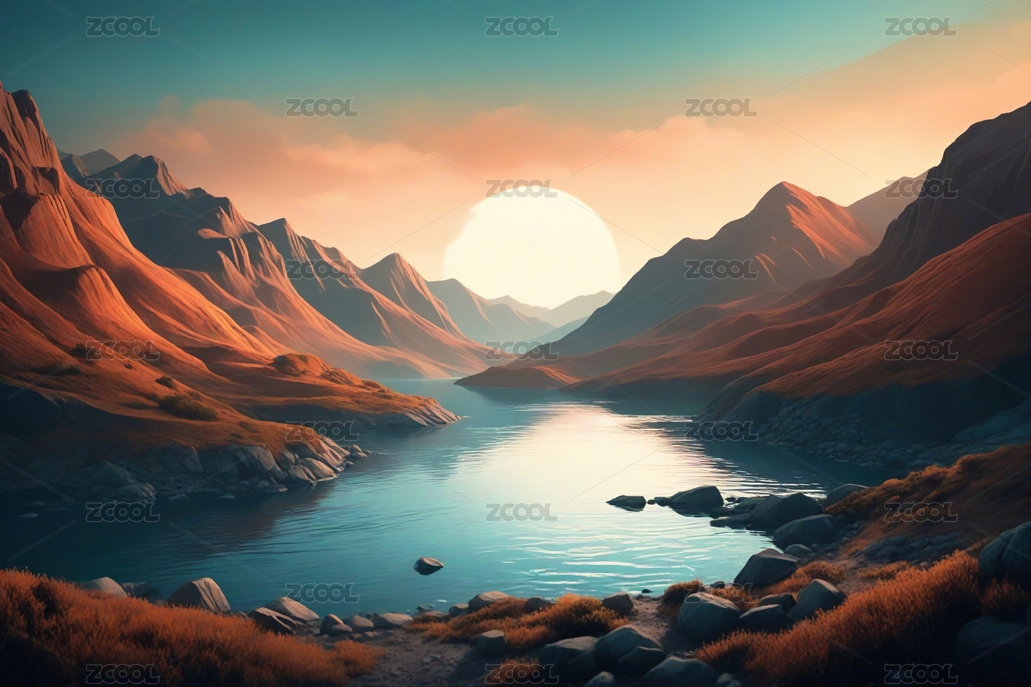 日落,山脉,河流,倒影,夕阳,云彩,风景,自然,美丽,宁静