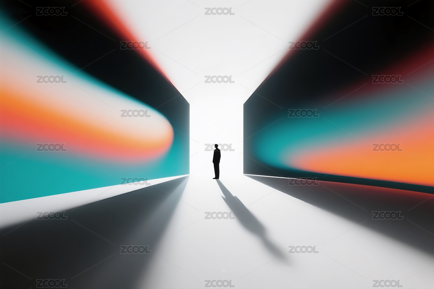 光影隧道中孤独站立的身影
