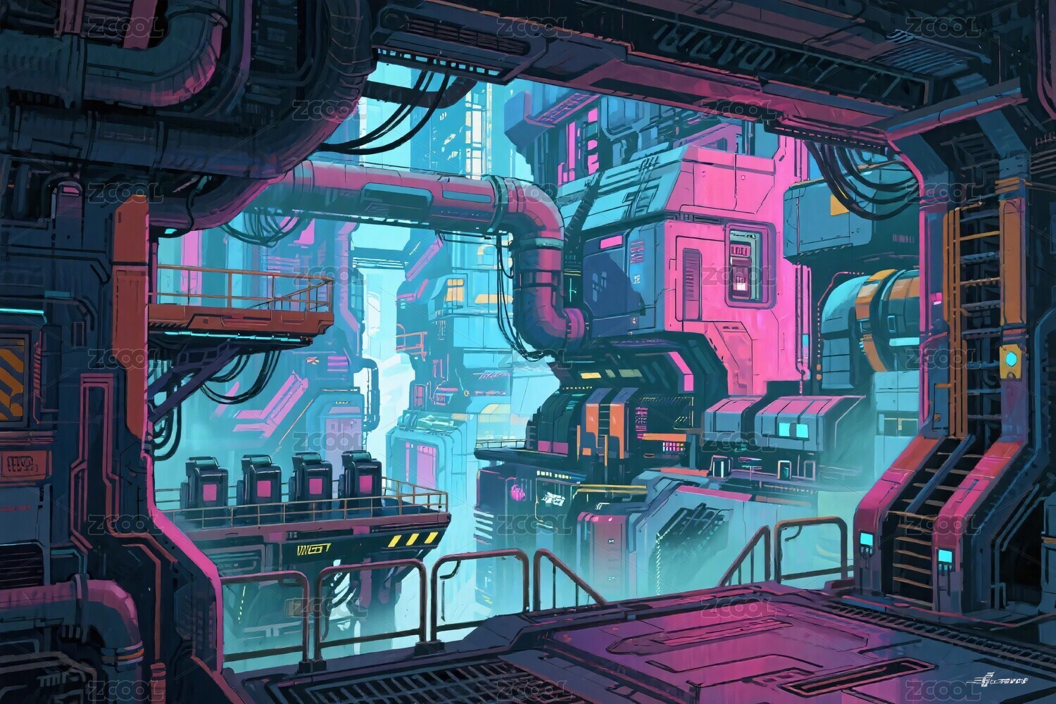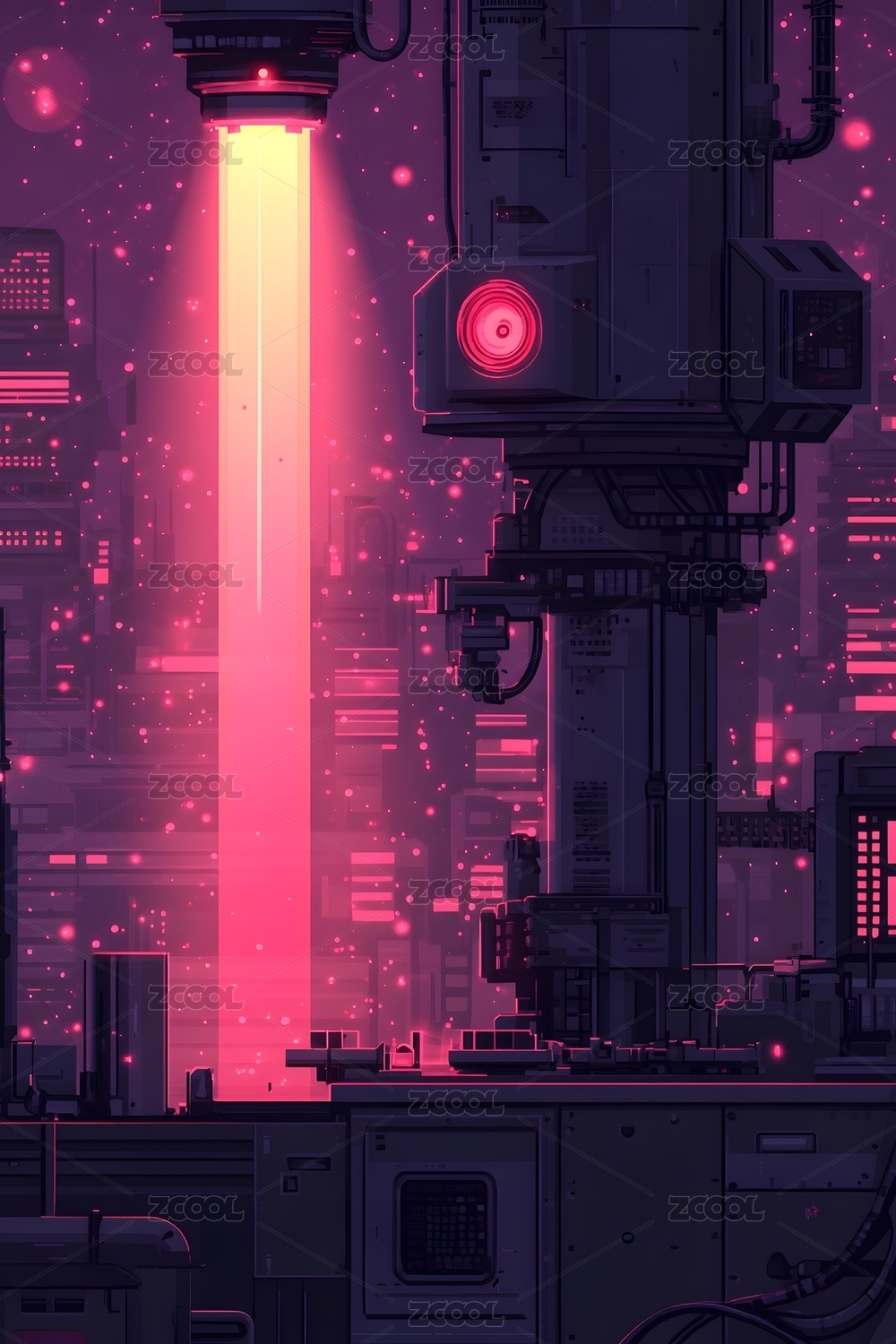 艺术, 科技, 夜晚, 城市, 建筑, 场景, 插画, 星星, 宇宙, 科幻