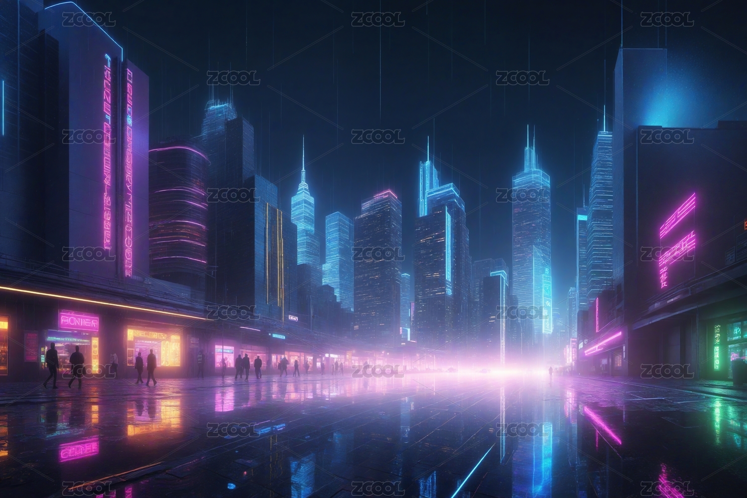未来都市霓虹夜景主题
