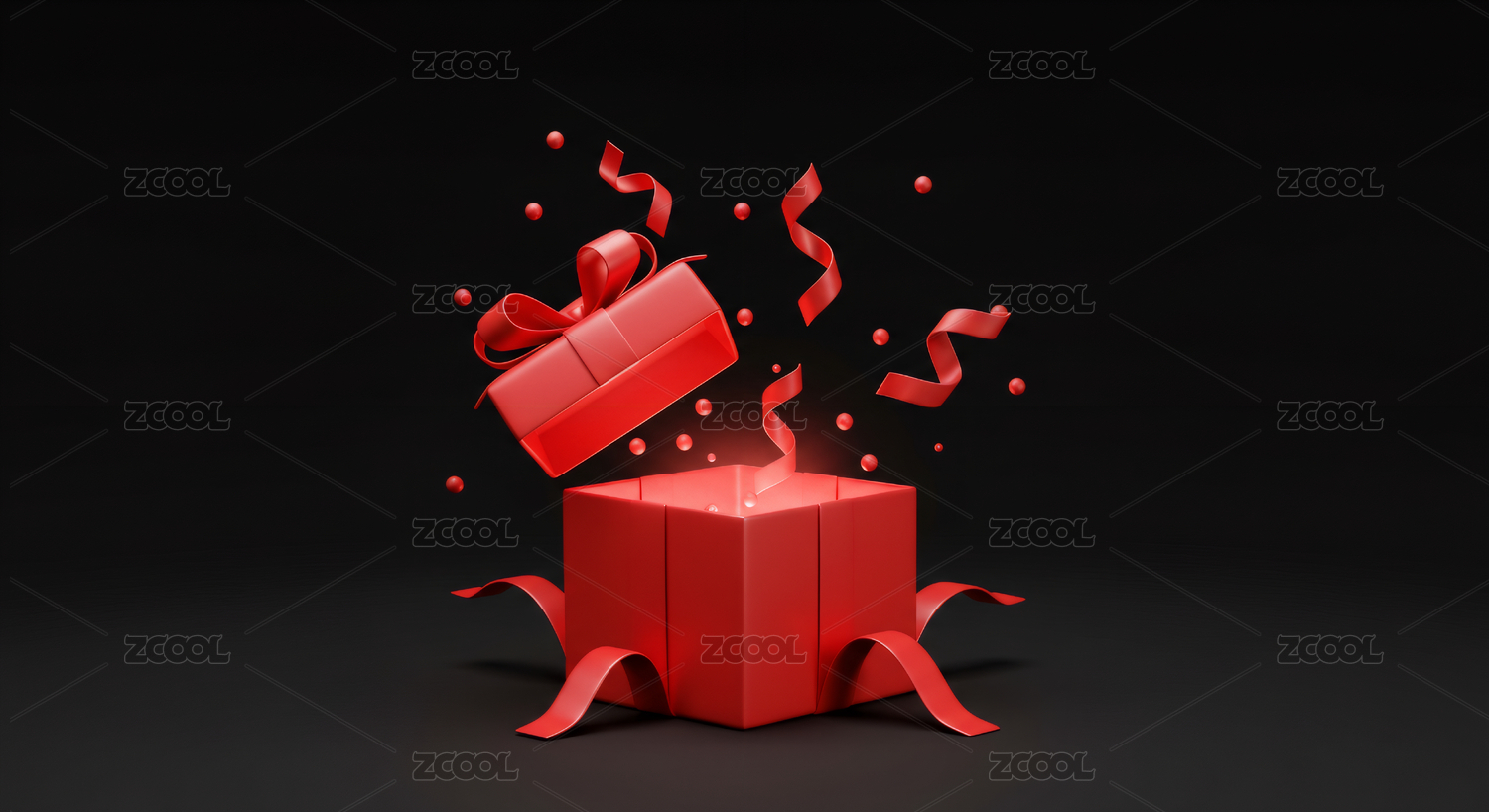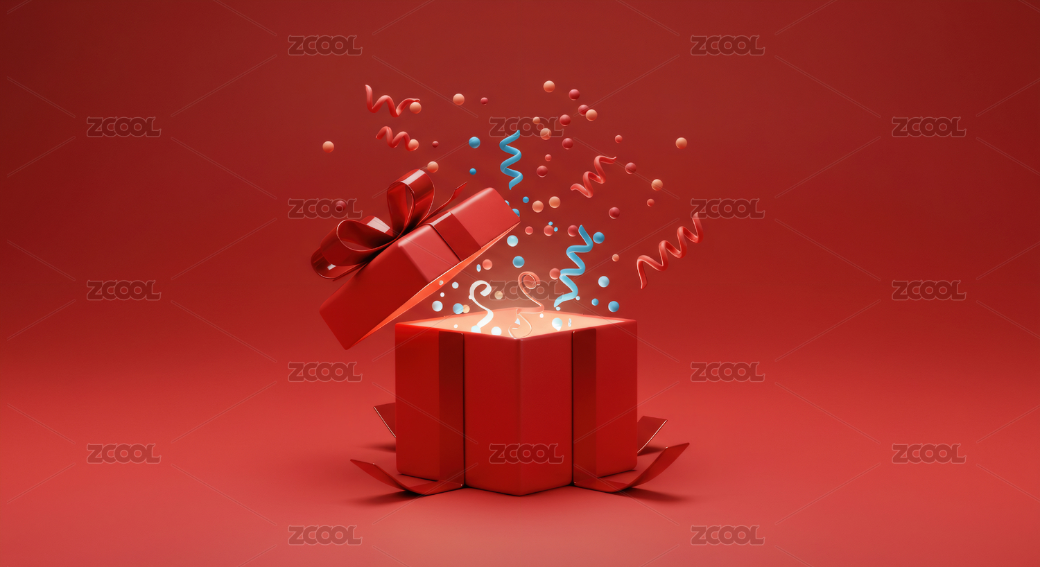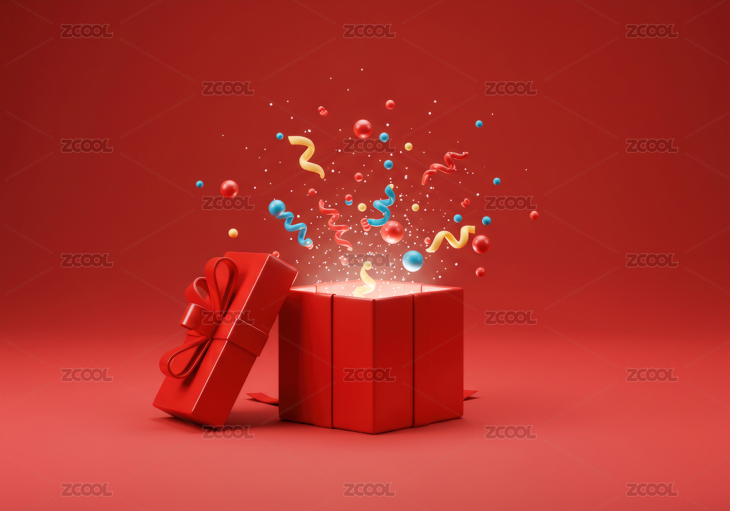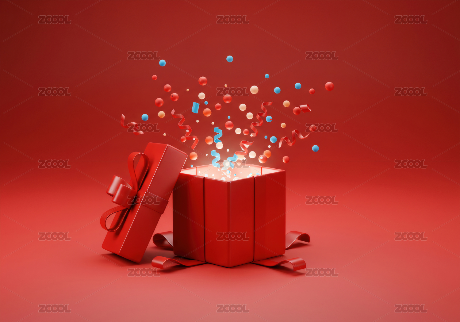 开启,礼物盒,卡通,电商,节日,3D,礼盒,活动,礼花,红色