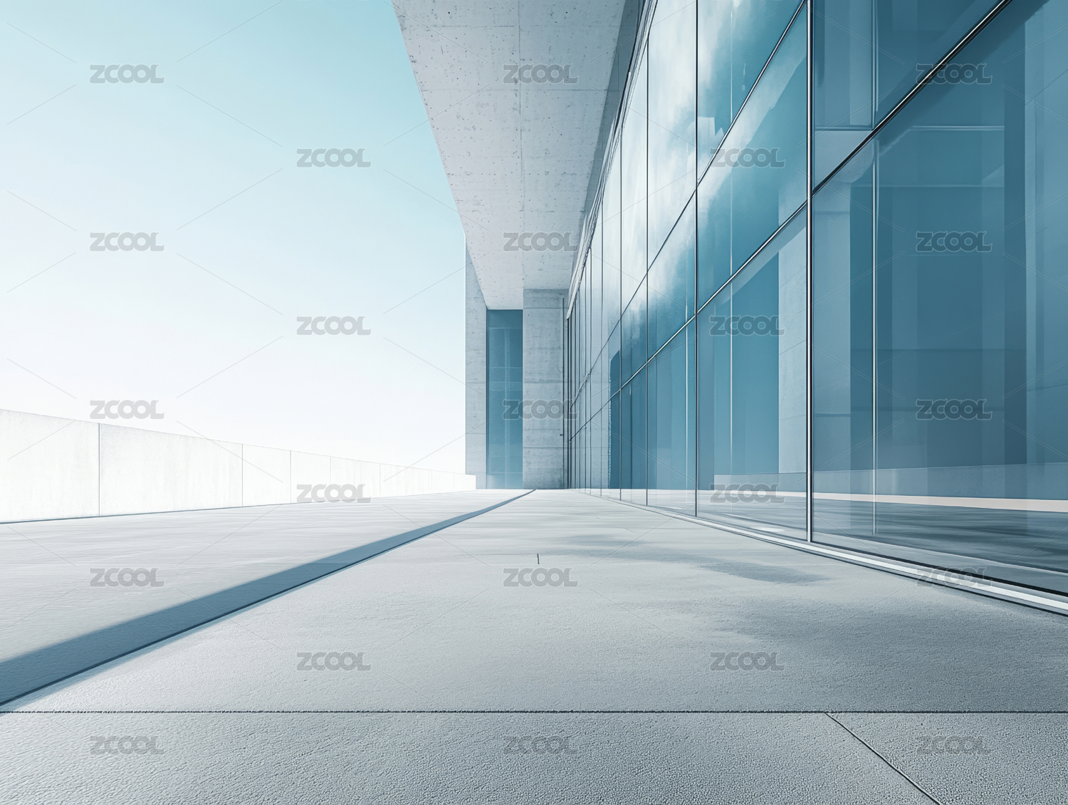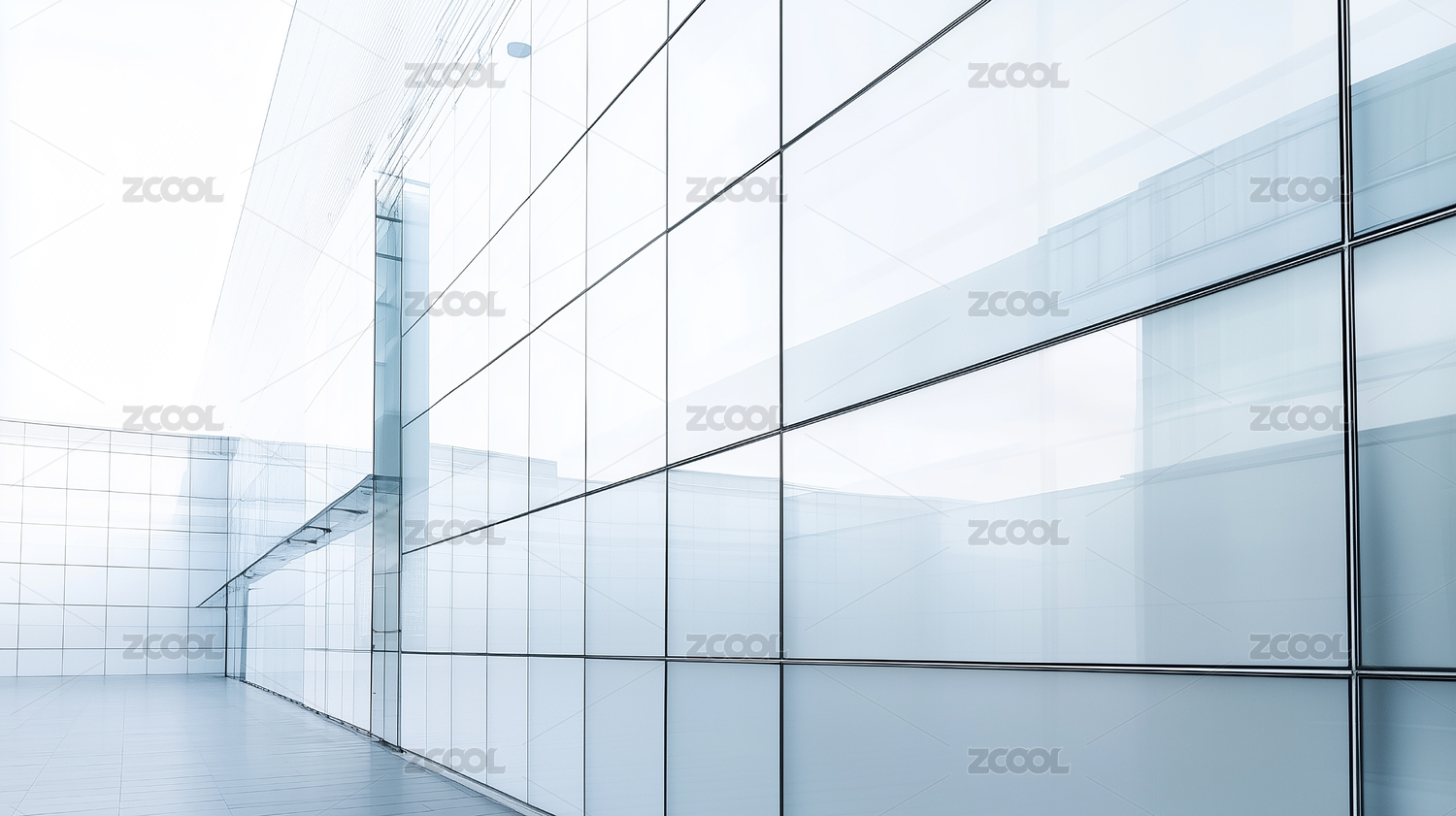 现代玻璃建筑对称走廊