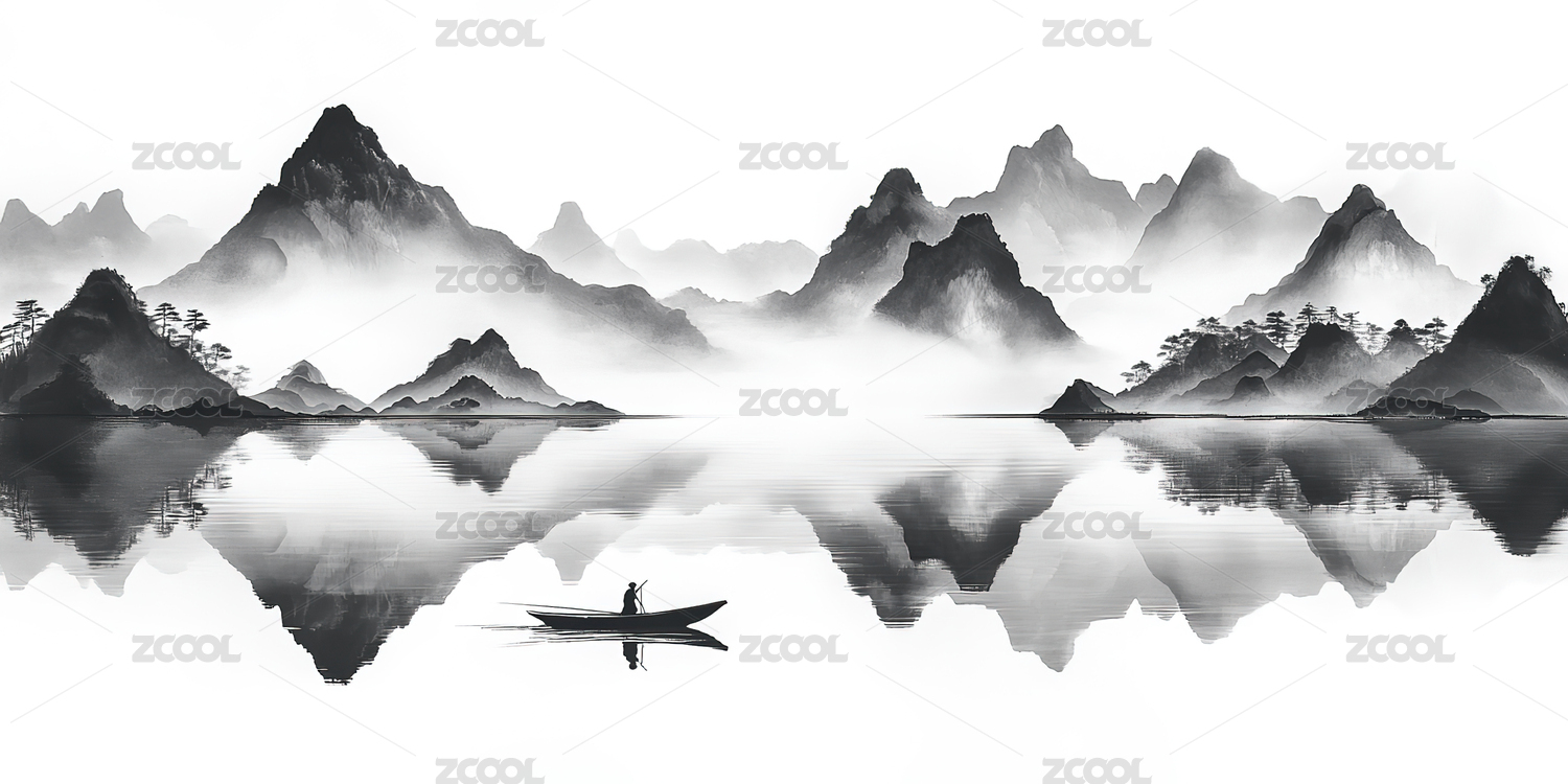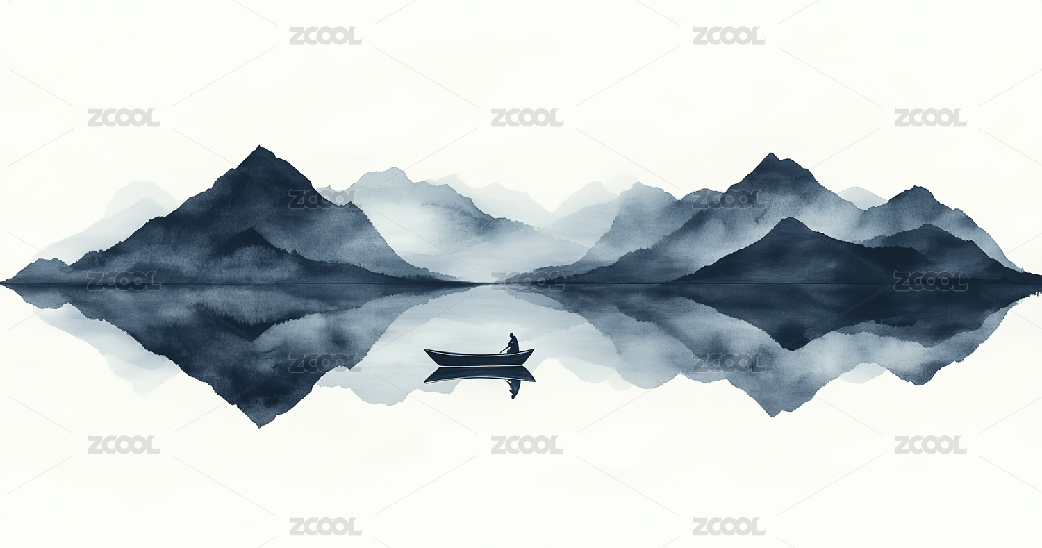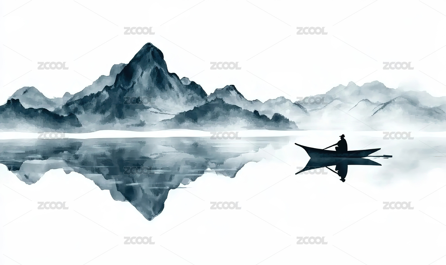 一个人,人,中国文化,自然,艺术,水墨画,新中式风格,风景,地形,渔船