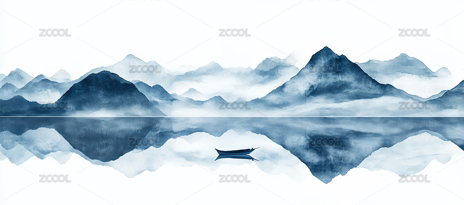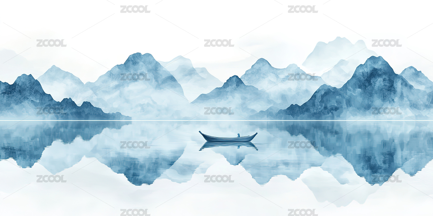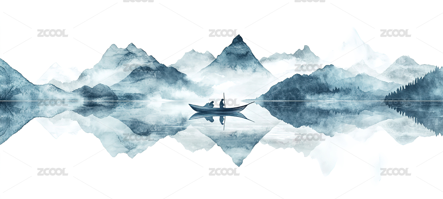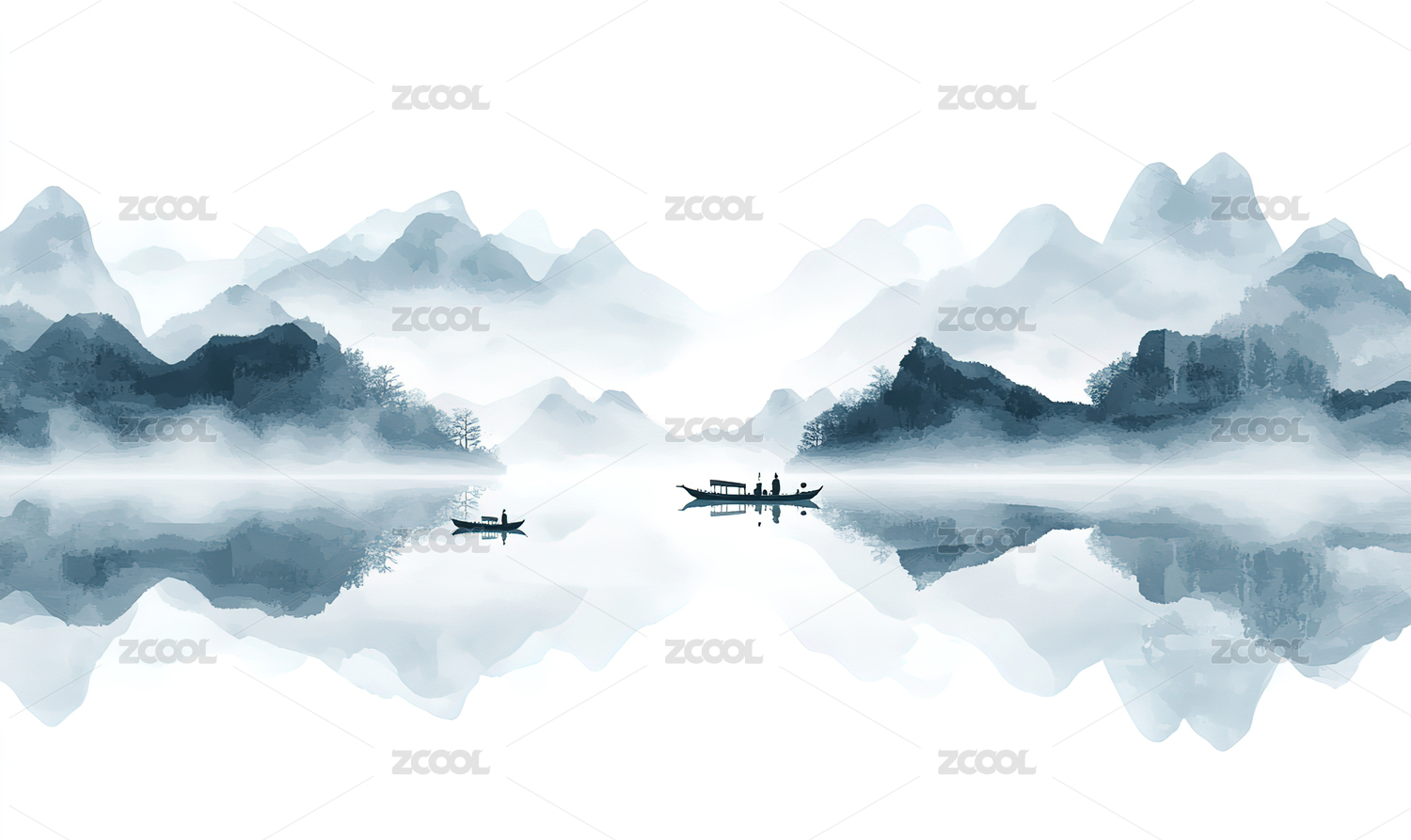 一个人,人,中国文化,自然,艺术,水墨画,新中式风格,风景,地形,渔船